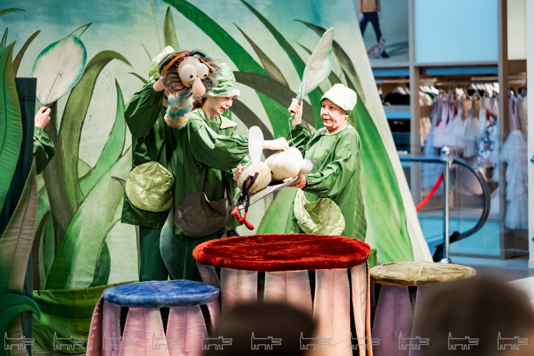 ДЛТ совместно с лучшими детскими театрами города запустил проект «Театральные воскресения» — каждый месяц универмаг будет показывать новый спектакль. Первым стал «Муха-Цокотуха» в исполнении театра кукол «Бродячая собачка», который известен новаторским подходом к интерпретации детских произведений. Перед началом выступления вместе с аниматорами дети создали рисунки по мотивам одноименной сказки Корнея Чуковского и обыграли загадочных мимов в «Крокодила».