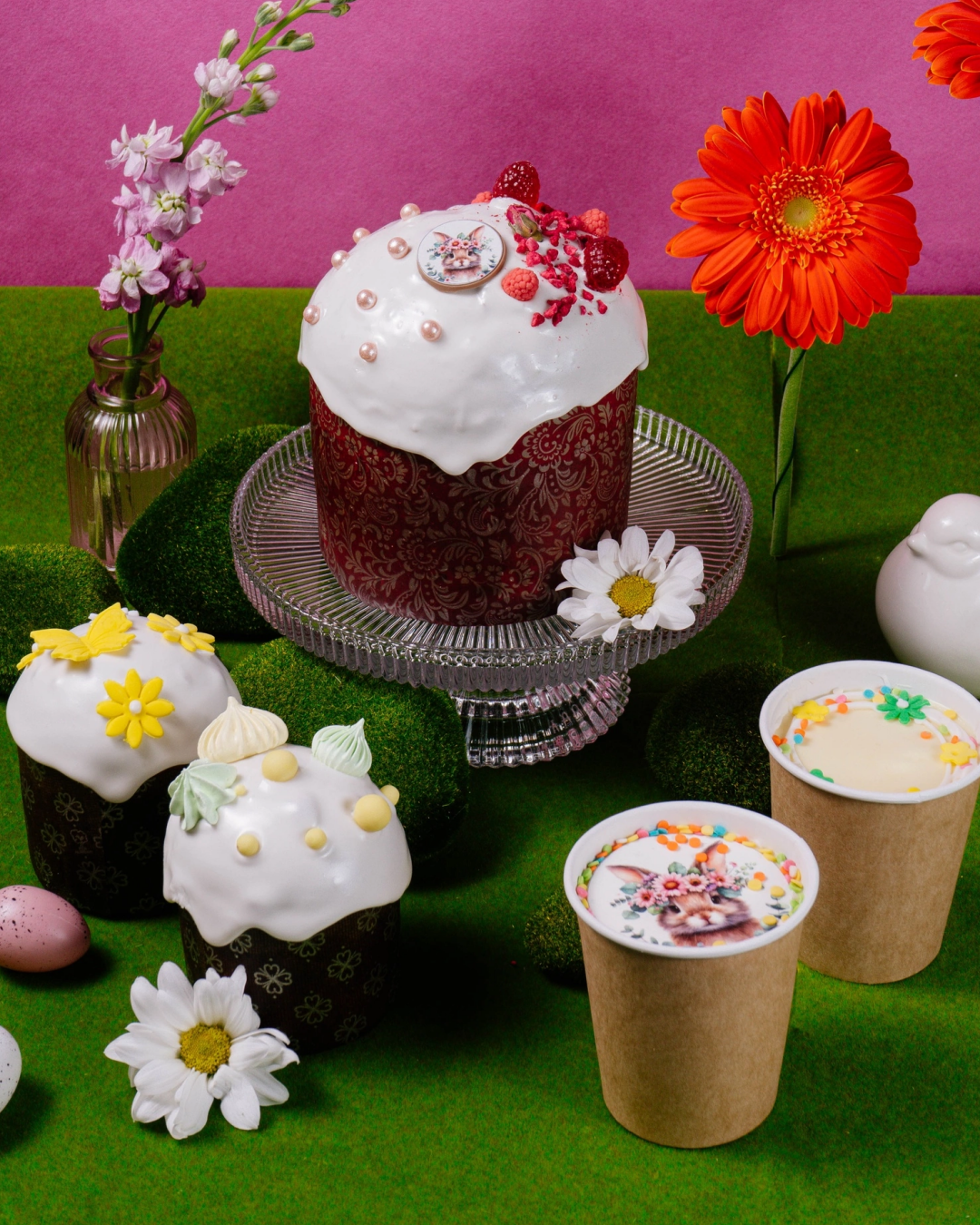 К Светлой пасхе кондитерская-пекарня готовит широкий ассортимент: итальянские куличи «Панеттоне» — как классический вариант с цедрой лимона, апельсиновыми цукатами, вяленой вишней и клюквой, ромовым изюмом, марципаном, шоколадом и ванилью, так и более оригинальные — с заварным и ванильным кремом, с сырным малиновым кремом и с бельгийским шоколадом, а также «Царский кулич» с ромовым изюмом, вяленой клюквой, апельсиновыми цукатами, ванилью и кардамоном, творожная пасха из фермерского творога и сливок с добавлением вяленой клюквы, ромового изюма, цукатов, фисташек и ванили и французская бриошь «Куглоф», которая буквально «купается» в сиропе с ромом и цитрусовом масле «Нуазет», с начинкой из карамелизированных яблок, томленных в специях.