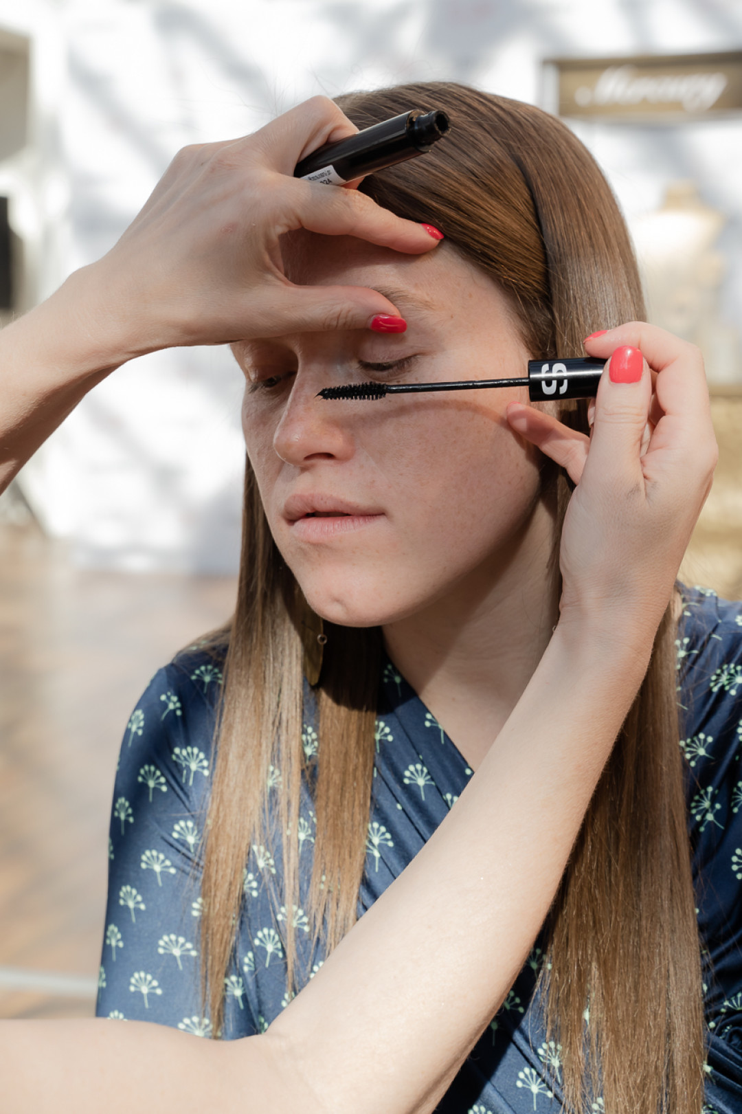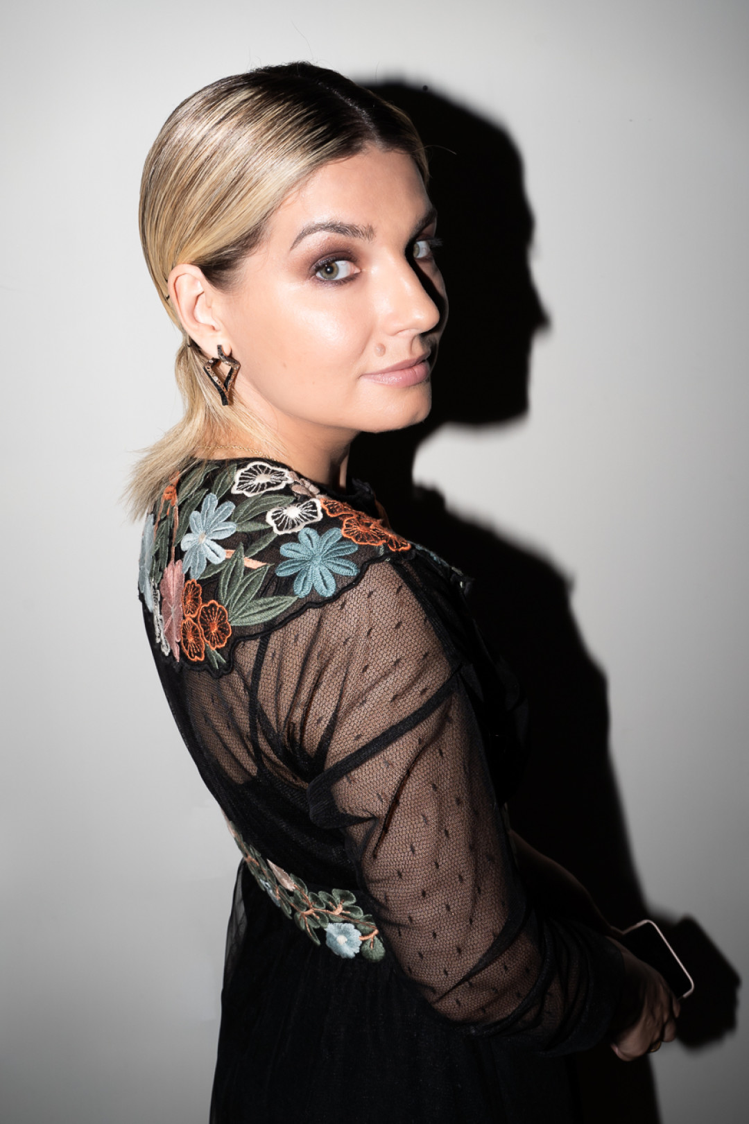 Некоторые гостьи, впрочем, сверкающему покрытию оказали сопротивление. Актриса Варвара Шмыкова объяснила отказ просто: «С головы смывать лень, а на лице блестки у меня уже есть!». И это верно: к природному глиттеру из веснушек дополнений не требуется. Поэтому команда Park by Osipchuk просто вытянула Варе волосы, не закрывая ими лицо.