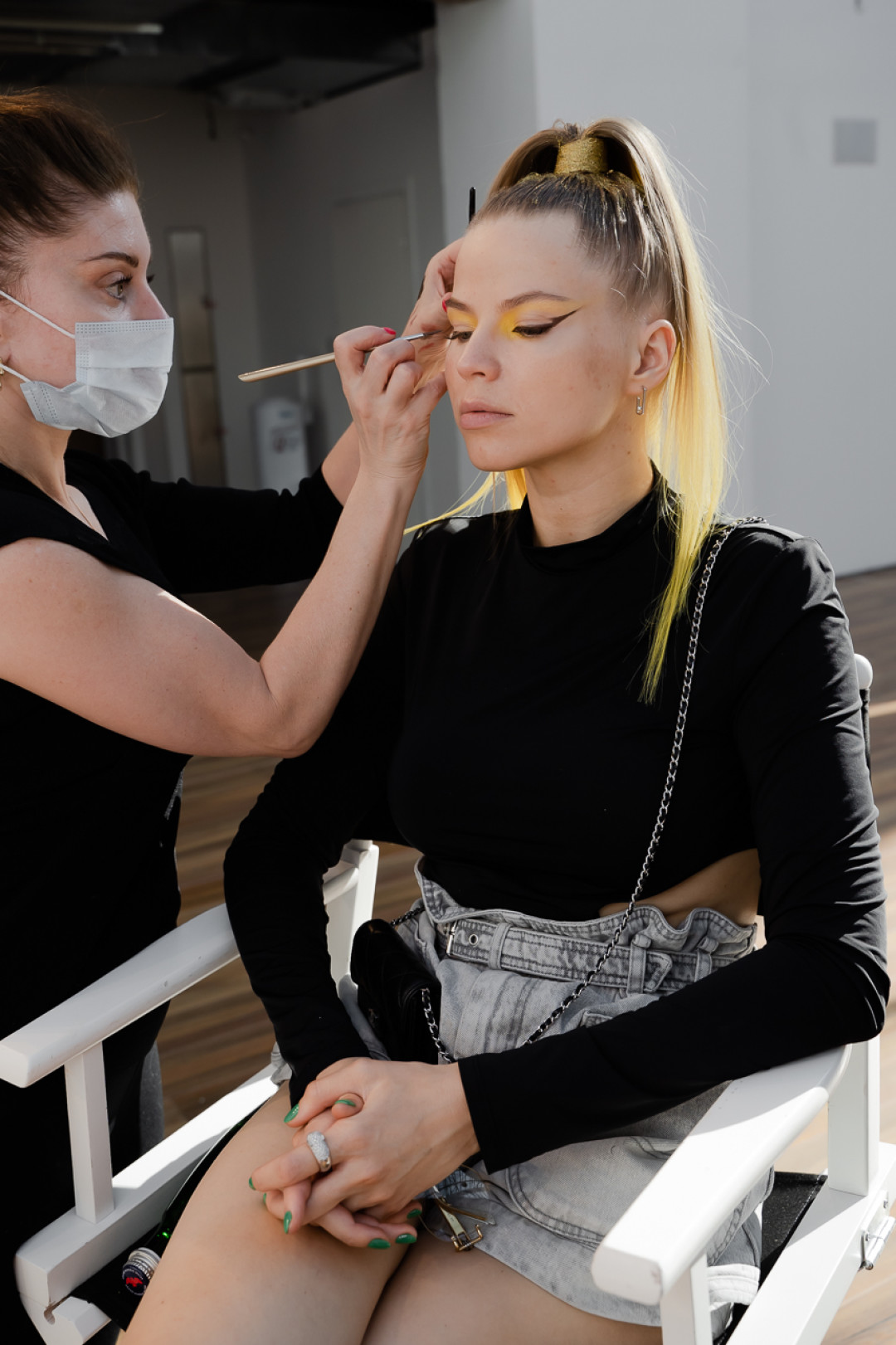 «Я люблю сложные задачи и рада, что приехала из Москвы поддержать коллег. Даже если палитры теней не хватает для запроса гостьи, всегда можно сымпровизировать. Мейкап ушек меня вообще не удивляет: часто подчеркиваю их хайлайтером – очень молодит!»