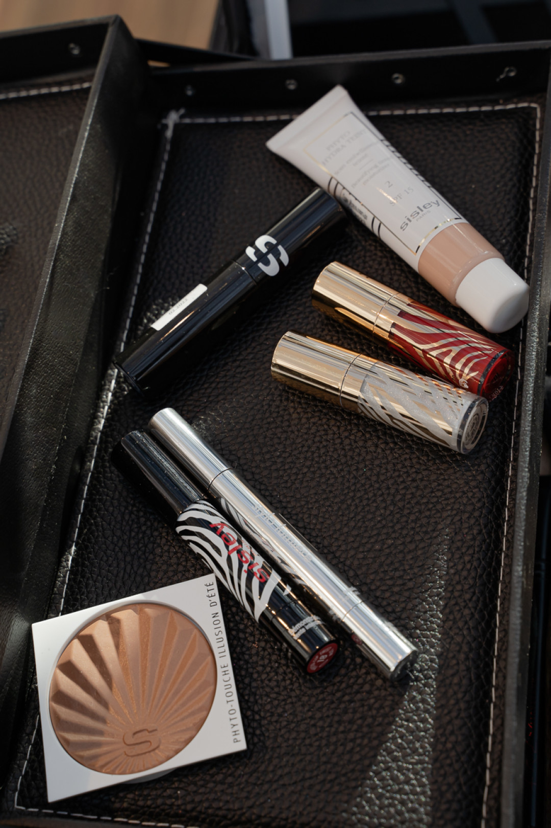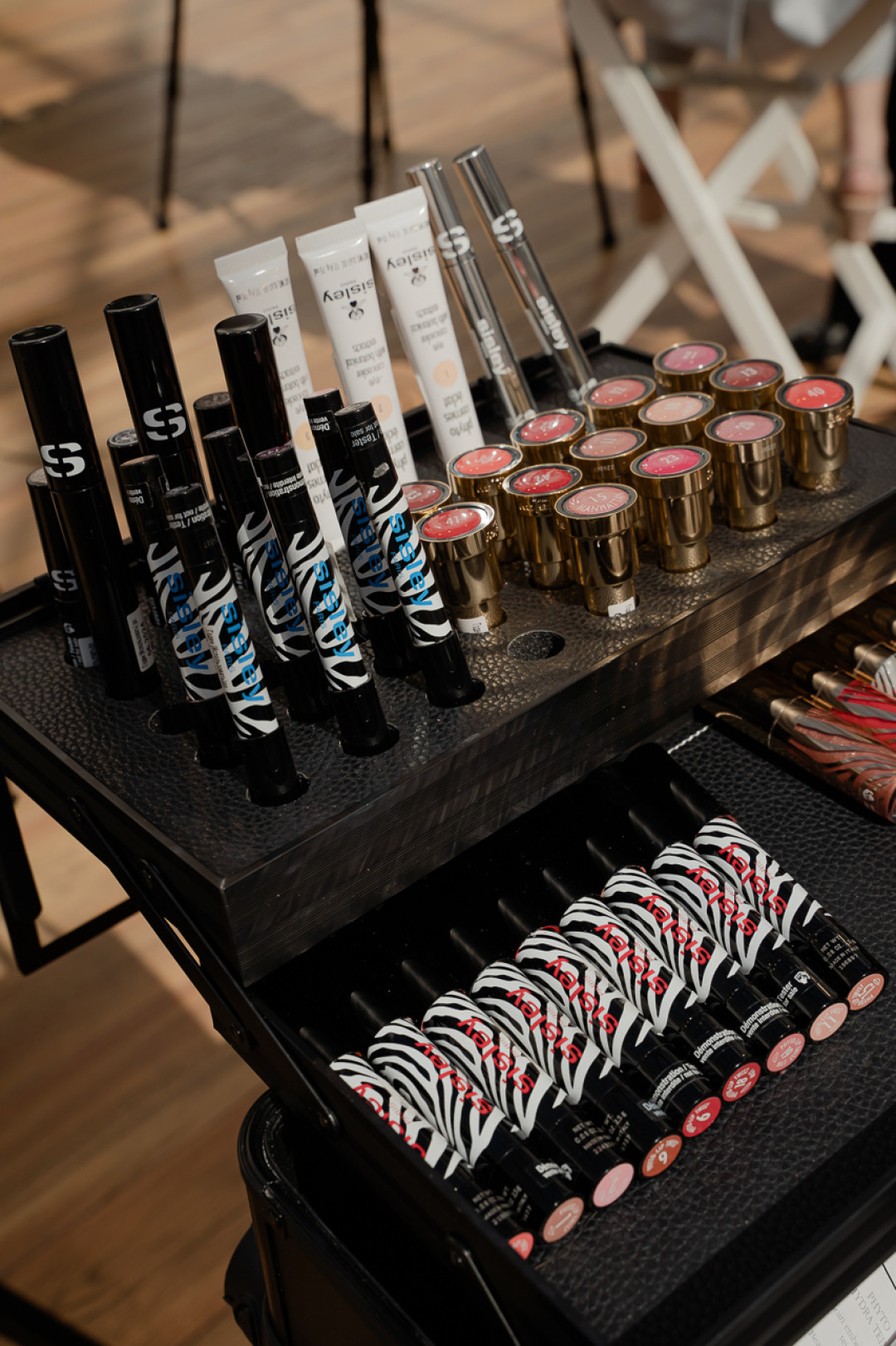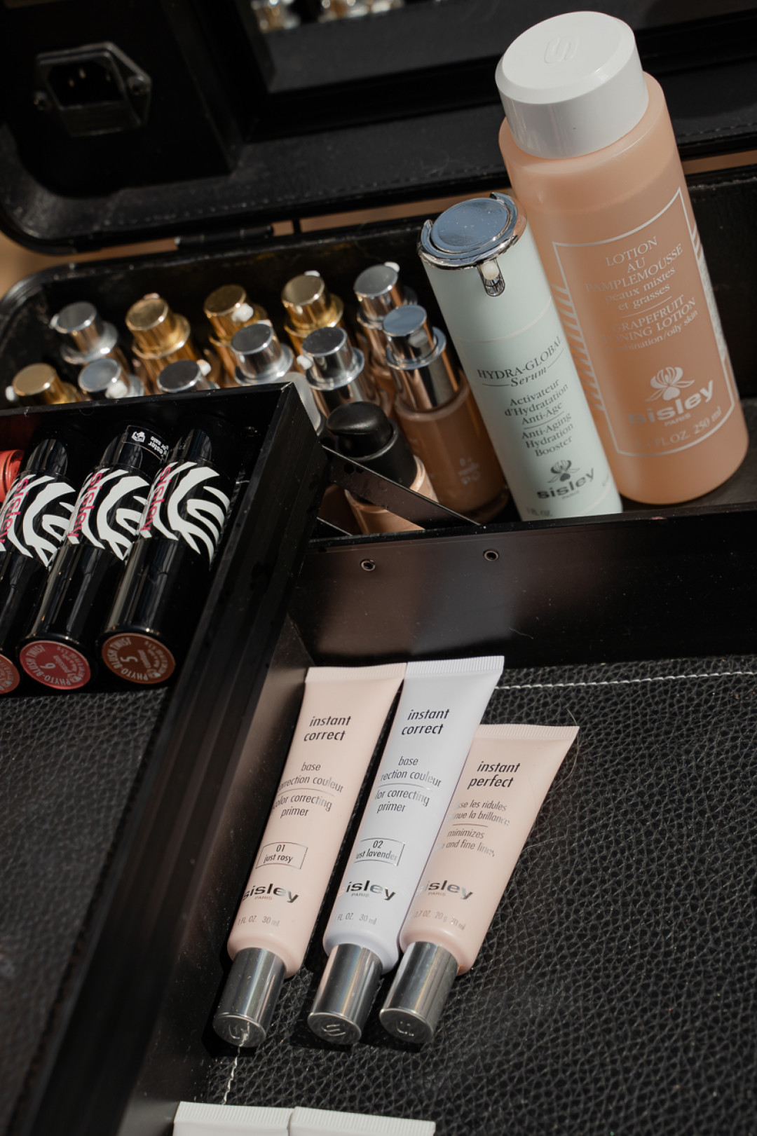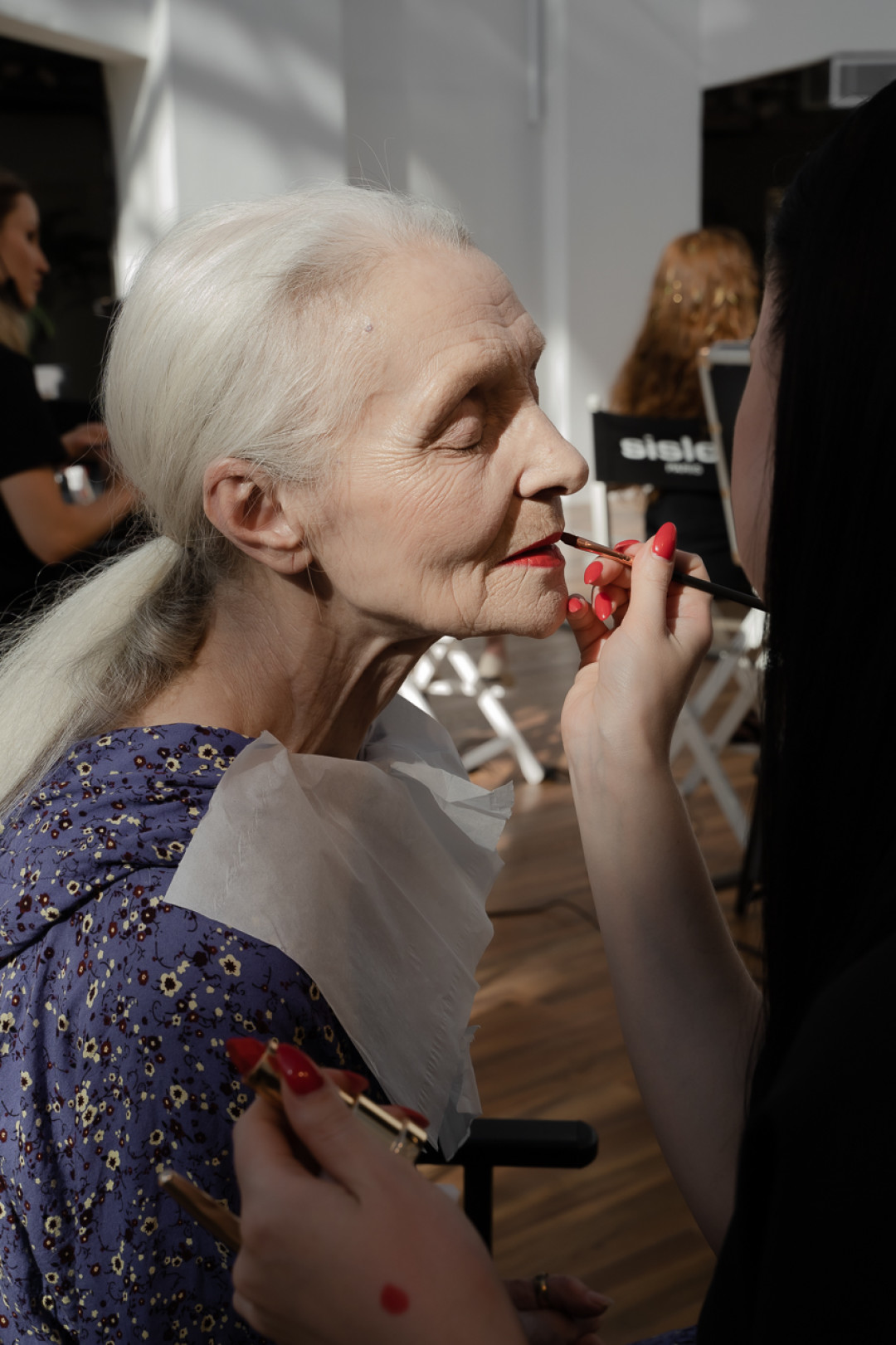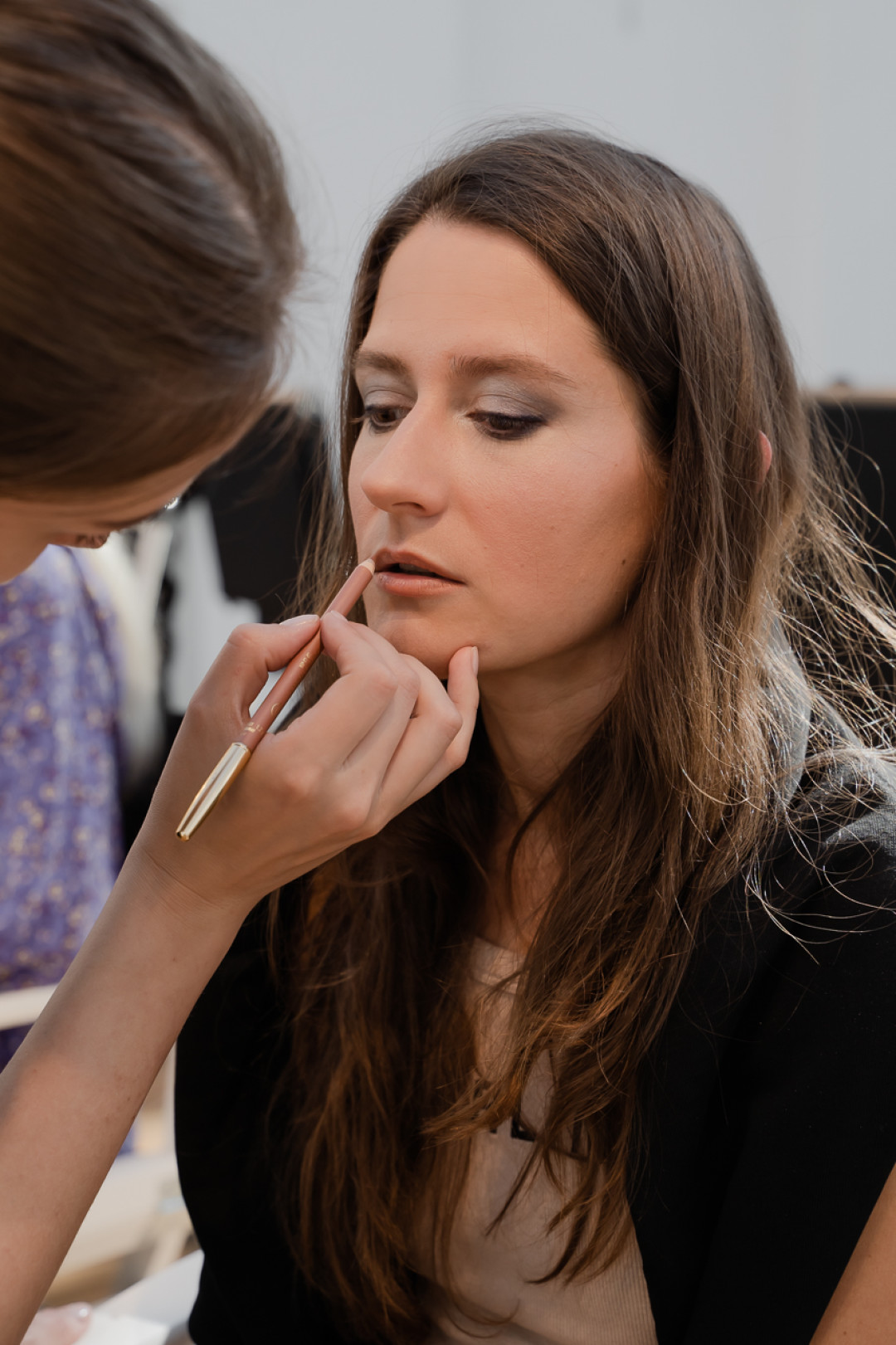 Несмотря на отсутствие глиттеров, визажисты Sisley Paris тоже выдавали ослепительные решения. К примеру, певице Августин требовался сценический мейк с цветными смоки. Что ж, визажист Юлия Зубарева не просто нарисовала их фуксиевым карандашом для губ Phyto-Levres Perfect со скваланом и фруктовыми маслами, но еще добавила во внутренний уголок глаза восхитившую артистку лазурь. Высветленные консилером брови дополнили образ дивы, а мейкап ушей окончательно убедил Августин в том, что она попала в арт-картель единомышленников.