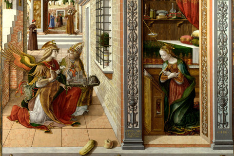 15 февраля в Эрмитаже открывается очередная выставка одной картины. «Благовещение со святым Эмидием» (1486) Карло Кривелли привезли прямиком из коллекции лондонской Национально галереи — в России картин итальянского живописца, едва известного до XIX века, нет.