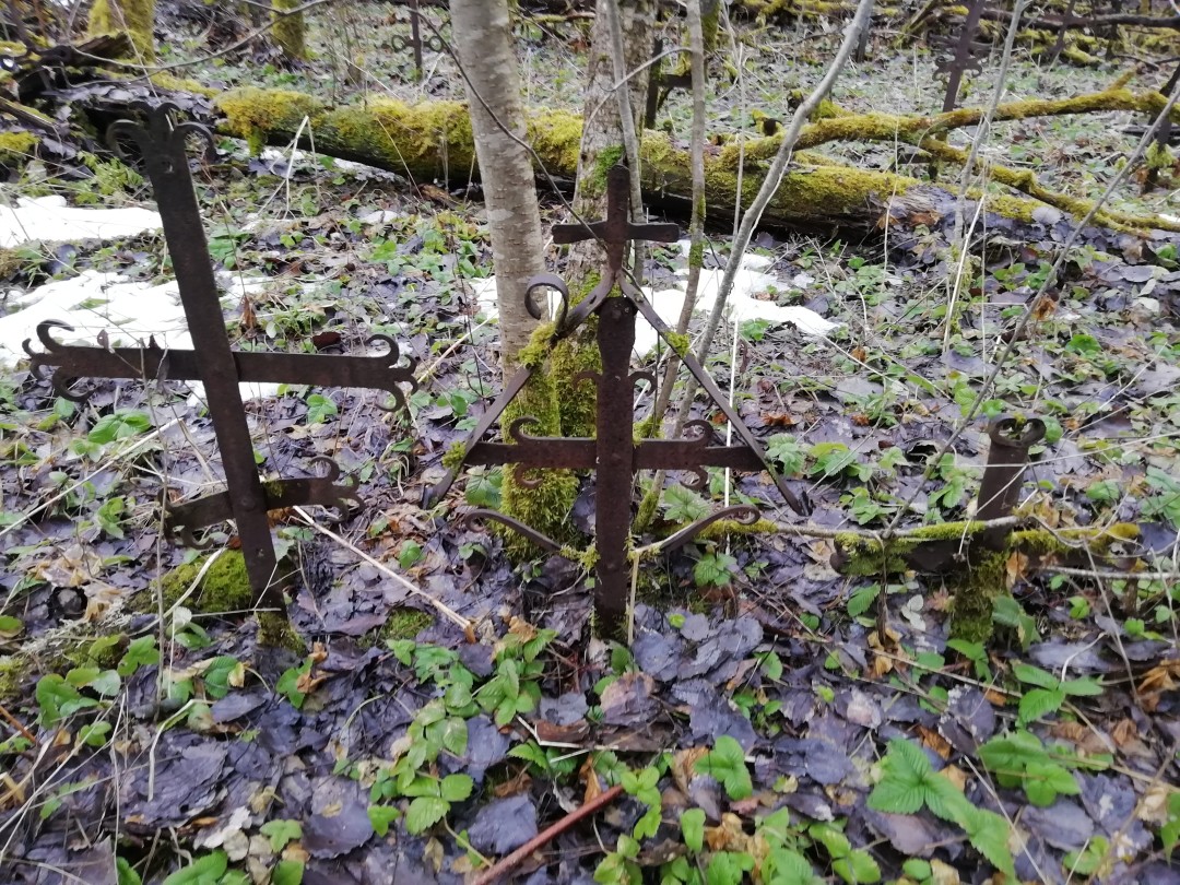 На Дудерговских высотах у восточного склона «Туутари-парка» в буреломе спряталось древнее кладбище с огромным количеством металлических крестов. Их сначала даже не видно из-за сливающихся по цвету веток. Тут главное не зацепиться за один из них — можно больно напороться на соседний.