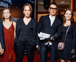 Лиза Боярская, Аглая Тарасова, Юрий Колокольников и Максим Матвеев на премьере фильма «Серебряные коньки» в Петербурге