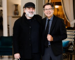 Сергей Полунин и Райф Файнс на коктейле в отеле "Кемпински Мойка 22" после премьеры «Танцовщика»