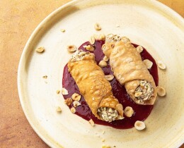 Канноли с паштетом и с соусом из вишни и вермута от Антона Исакова