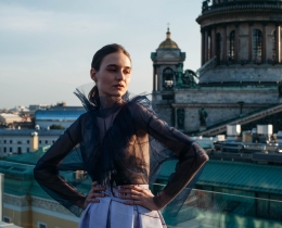 Финалистка проекта «Новые имена в моде», известная одеждой с видами Петербурга.