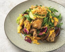 Салат с печенкой - пример высокой гастрономии, когда все ингредиенты дополняют друг друга, а соус делает их союз совершенным. Блюдо от шефа питерского ресторана Veter однозначно стоит приготовить!
