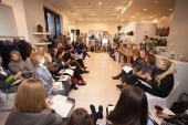 В бутике на Большой Конюшенной улице, под джазовый аккомпанемент певицы Эми Питерс состоялось транк-шоу весенне-летней коллекции марки Brunello Cucinelli. Гостям представили струящиеся платья в пол и юбки-макси, спортивную обувь со сверкающим декором, а также мужские луки, отсылающие к образу городского денди. Вдохновившись весенней линией, клиенты и друзья бренда наслаждались гастрономическим действом и закусками от ресторана Эдуарда Мурадяна «E.M.».