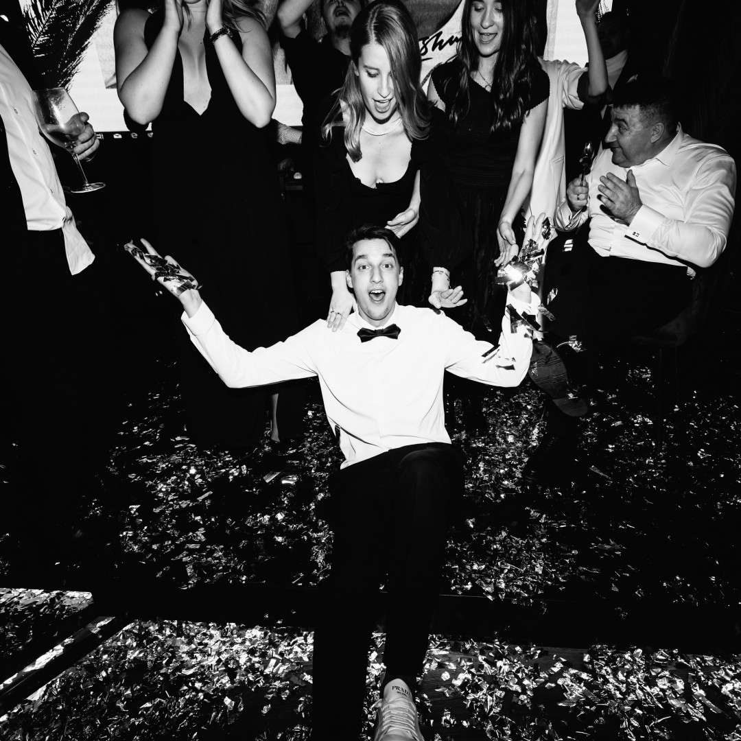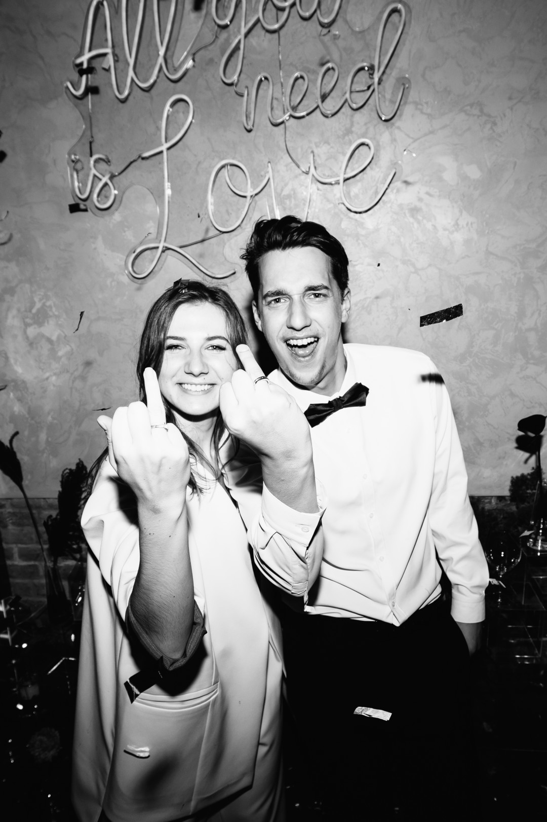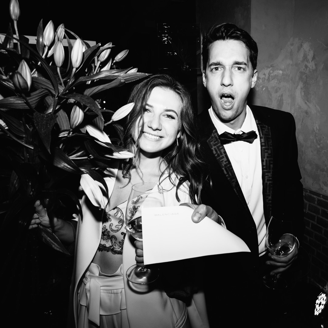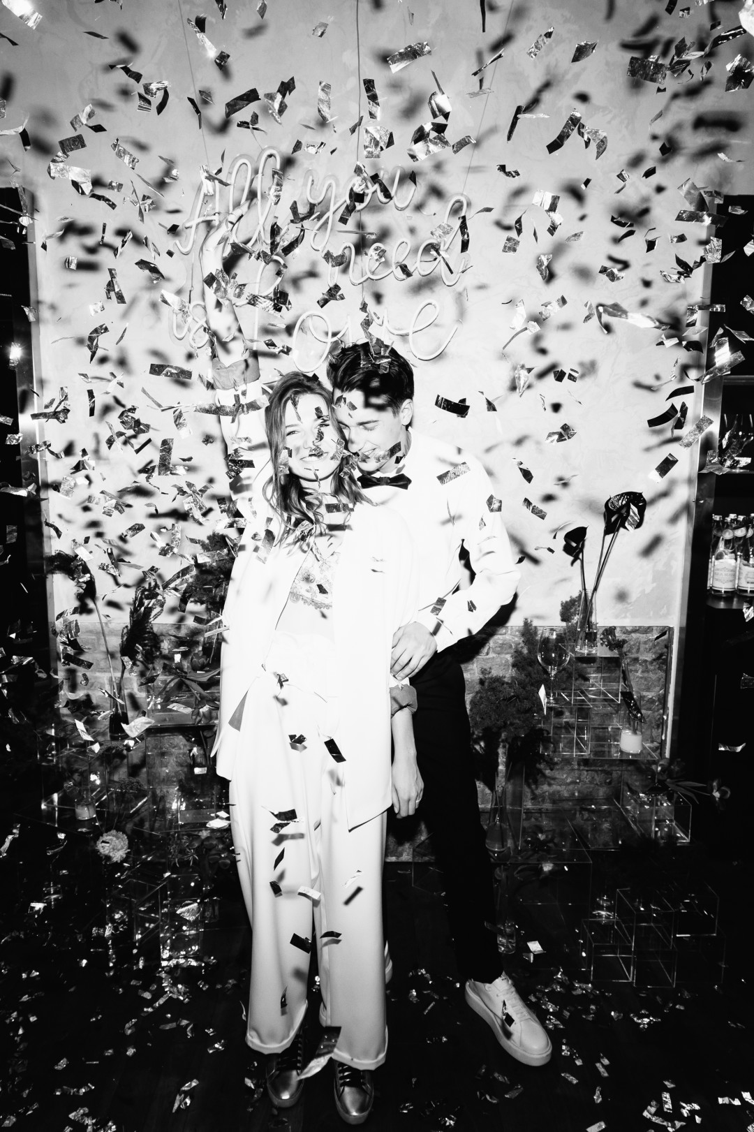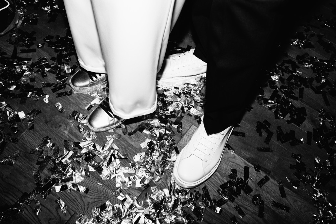 На энтузиазме и повышенном романтизме мы придумали себе свадьбу за пару месяцев. Черно-белый дресс-код, тонны блестящих конфетти, бесконечное вино, никаких скатертей и рассадки, ни одной старой пыльной свадебной традиции. Первой покупкой к торжеству стали кольца. Это было смешно: мы пришли в Bulgari нелегким субботним утром в образе подростков, которые вчера пережили какой-то сумасшедший патихард; на нас смотрели так, будто мы зашли погреться. Мы за 10 минут нашли те-самые-кольца и решили, раз шопинг складывается, нужно не сбавлять темп. За две недели образы были полностью собраны.