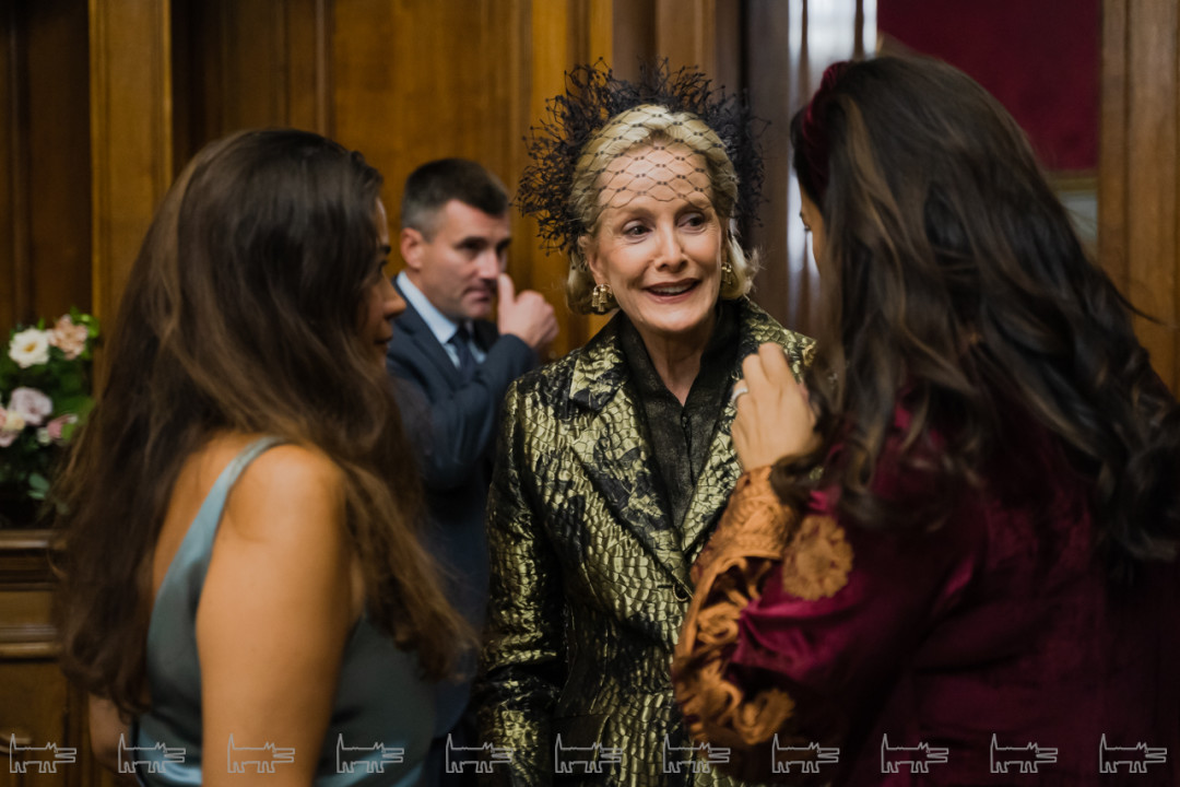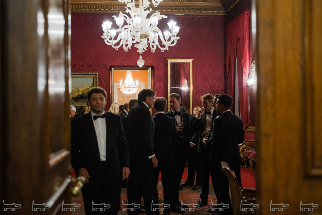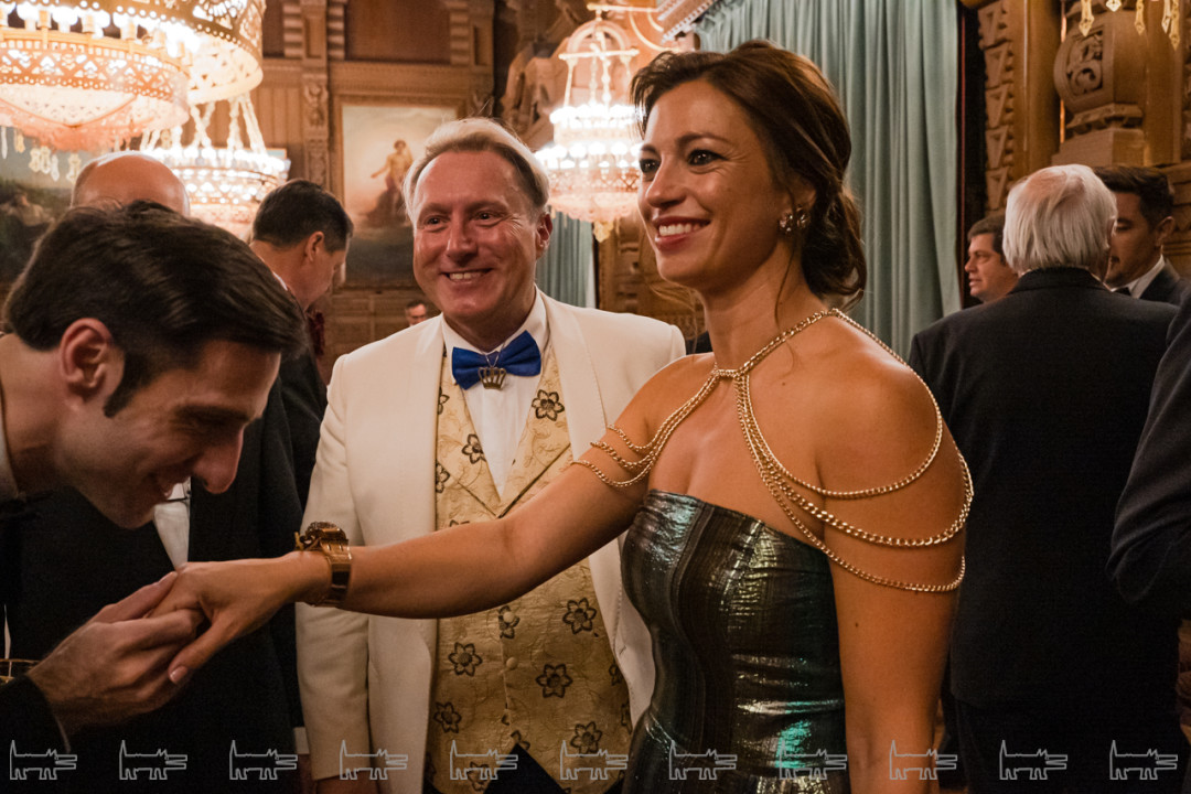 Представители королевских семей Европы старались Party Like a Russian. В этом им помогала политкорректная винная карта — угощали вином и шампанским только российских производителей. Десерты — в креманках, стилизованных под яйца Фаберже. Подача особенно пришлась по вкусу правнучки Карла Фаберже Саре, для которой она тоже стала сюрпризом.