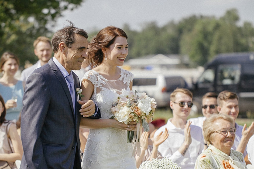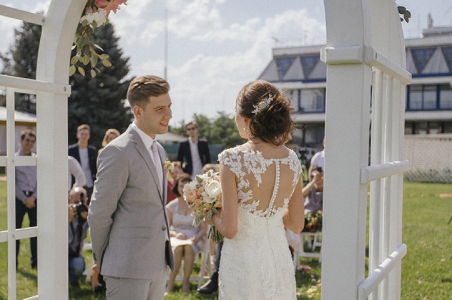 Свадьбу фотографа и архитектора Саши Стокгольм и графического дизайнера Константина Левина летом 2014-го устроили в Sydney Beach Club. Церемония прошла в лучших традициях голливудских фильмов: невесту в кружевном платье с длинным шлейфом к алтарю вел, согласно свадебному протоколу, отец. А жених втайне от невесты собрал свой бэнд и исполнил на празднике трогательные серенады.