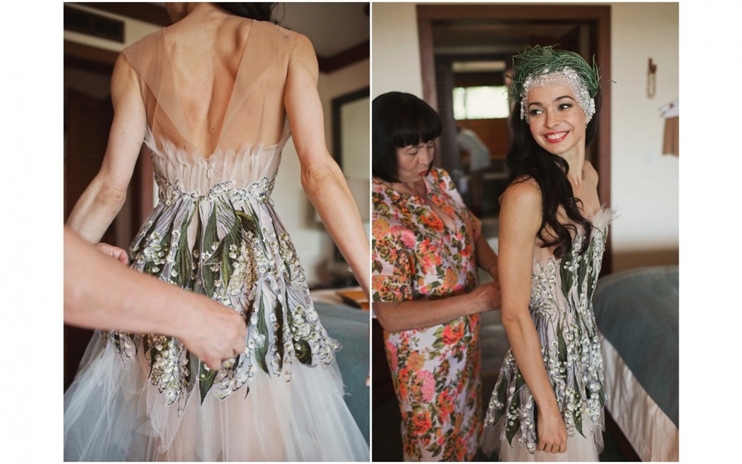 Заказ платья от победительницы нашего конкурса «Новые имена в дизайне-2015» Ольги Маляровой стоит от 150 000 рублей: на цену влияет не только ручная работа и высококачественные материалы, но и звездное портфолио с нарядами для Анны Седоковой, Татьяны Терешиной, Аллы Михеевой, Татьяны Котовой, группы «ВИА Гра» и группировки «Ленинград». В большинстве случаев платье становится результатом совместной работы: так, медиа-художница Лена Шейдлина сама нарисовала свой наряд для свадьбы, а Ольга помогла превратить эскиз в реальность. «Невесты смутно представляют конечный результат, и я помогаю им определиться. — рассказывает дизайнер. — Сначала подробно узнаю предпочтения в фасоне, цвете и деталях, а после подбираю лучшие ткани, создаю правильные пропорции, делаю вышивку».