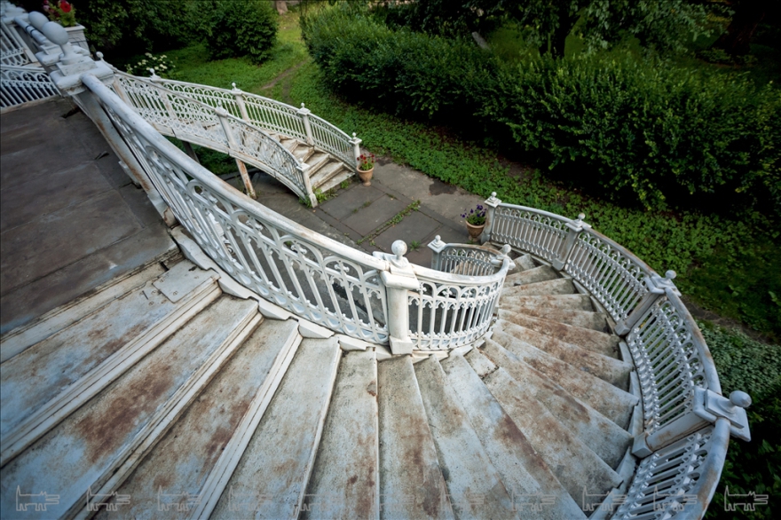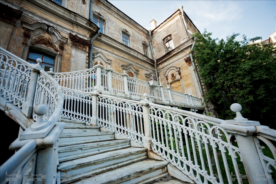 Одна из немногих дошедших до наших дней городских усадеб XVIII века. Главным напоминанием о владельцах – «хозяевах Урала» — является кружевная лестница-веранда. Ведущая из яблоневого сада к бельэтажу особняка, она отлита в чугуне по технологии, не известной современным инженерам. Чугунные маскароны на оконных наличниках по легенде имеют портретное сходство с членами семьи. Здание успело побывать и детским садом, и даже центром противодействию промышленному шпионажу, а теперь его занимают проектные институты: вход закрыт для посторонних, но нам удалось сфотографировать.