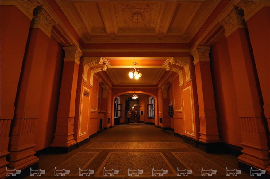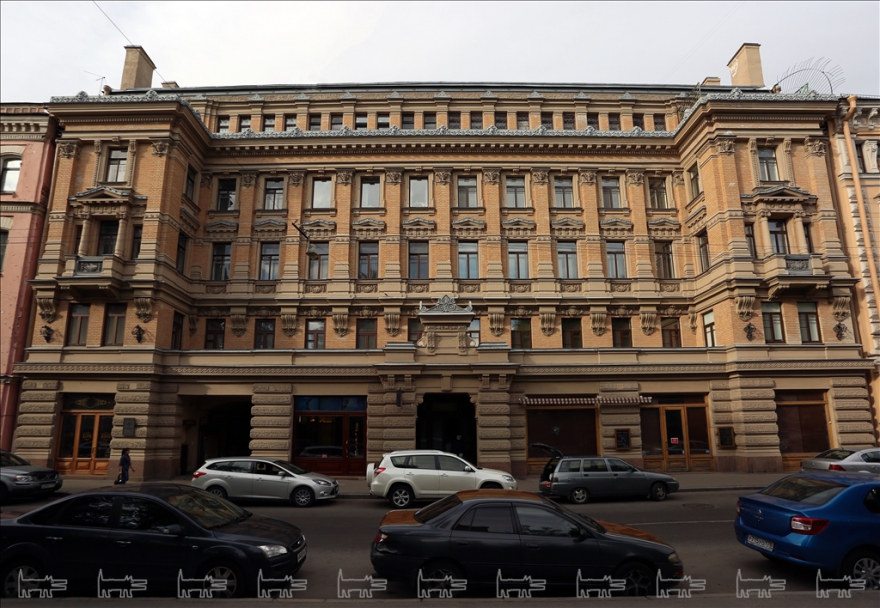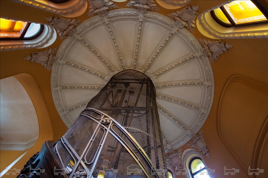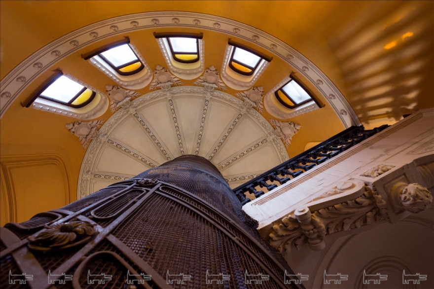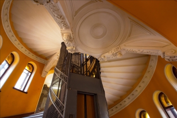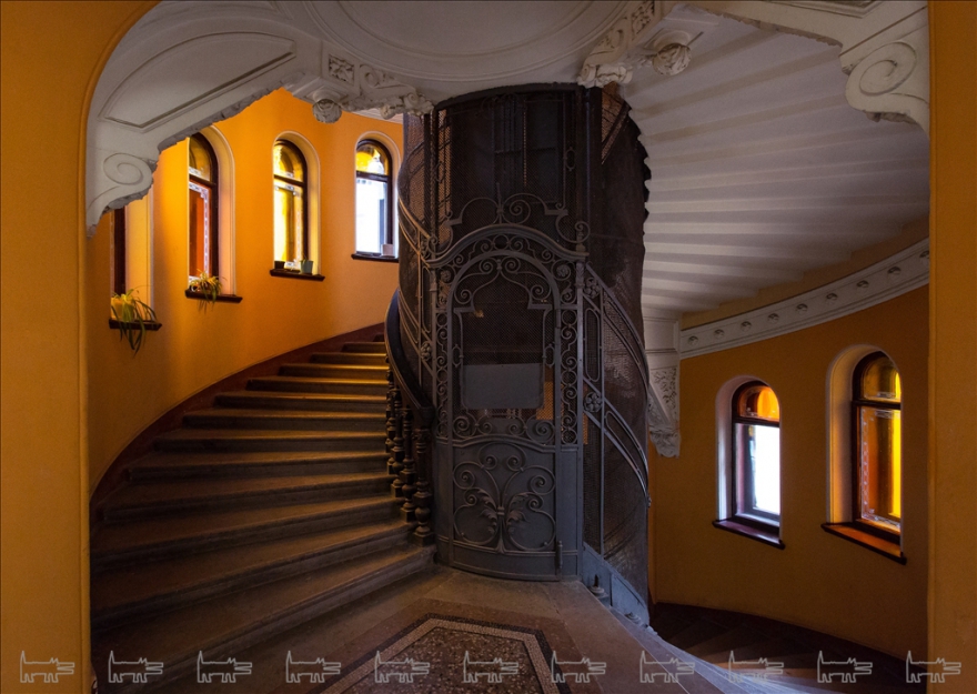 Дом по проекту архитектора Гавриила Барановского был построен по заказу одной из богатейших купеческих семей России. По своему декоративному убранству лестница нисколько не уступает пышно оформленному фасаду. Лестница украшена массивной лепниной, резной балюстрадой и оранжевыми витражами. Исключительная по оригинальности спиральная лестница, опоясывая круглую шахту лифта, объединяет площадки центрального и дворового корпусов.
