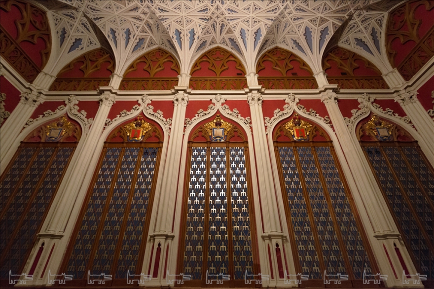 Особняк в фешенебельной части города в 1860-х годах перестраивался архитекторами Пелем и Гедике по заказу наследника рода Паскевичей, сына заслуженного генерала и полководца Ивана Федоровича. По мнению архитектора Роберта Гедике, готический стиль наилучшим образом соответствовал девизу семьи: «Честь и верность». В картушах, расположенных под потолком готической столовой, увековечены победы известного российского генерала, прославившего свой род, а в малом готическом зале установлены раскрашенные статуи рыцарей, отразившие увлечение хозяев особняка коллекционированием оружия.