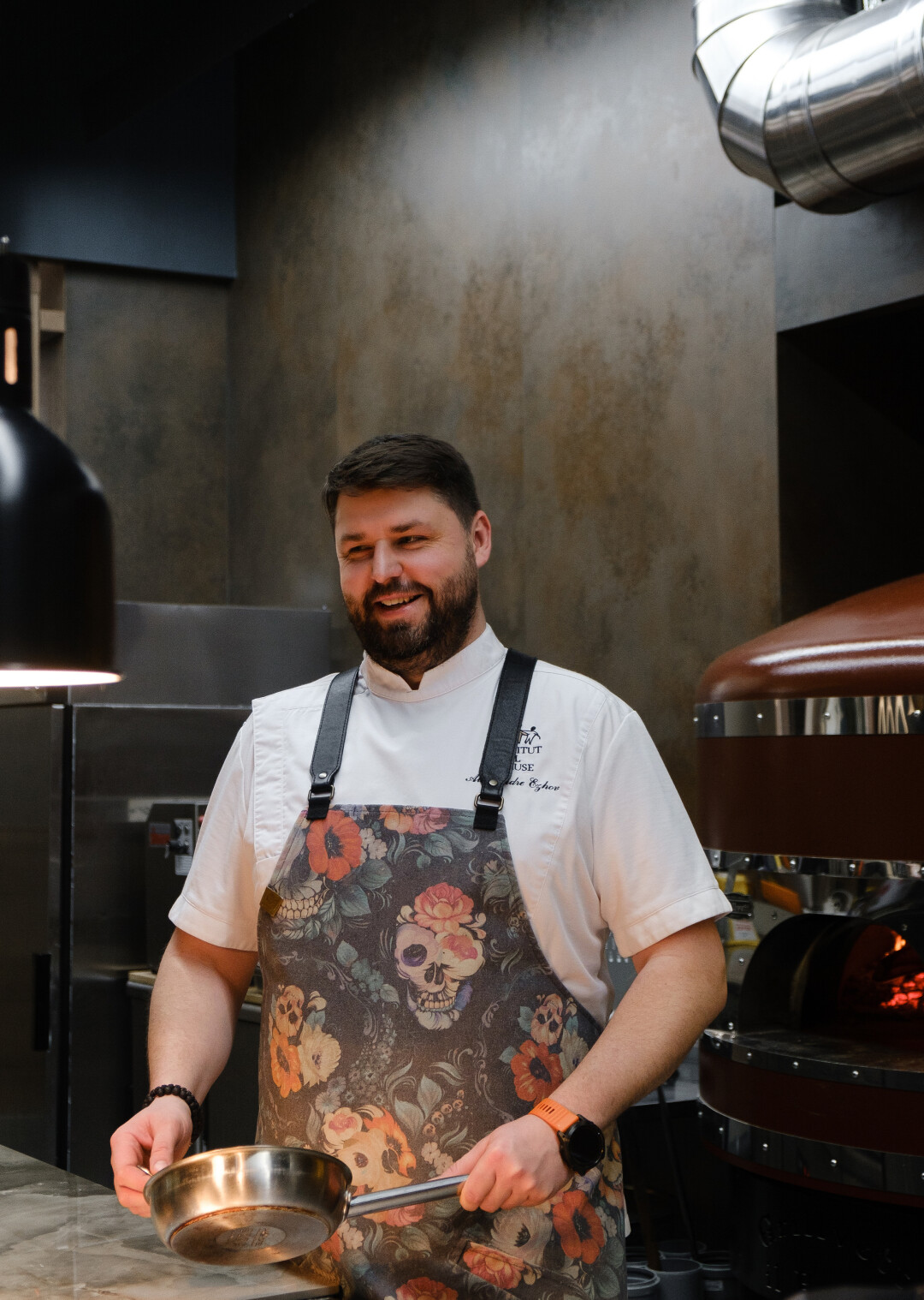 Моя бабушка работала поваром в столовой. Каждое лето я проводил у нее, она часто брала меня на работу. Со временем начал ей помогать, в семь лет мог сам приготовить полноценный ужин. В 13 получил первую работу в ресторане: мыл посуду и помогал поварам. А потом стал поваром. С тех пор развиваюсь и живу любимым делом.