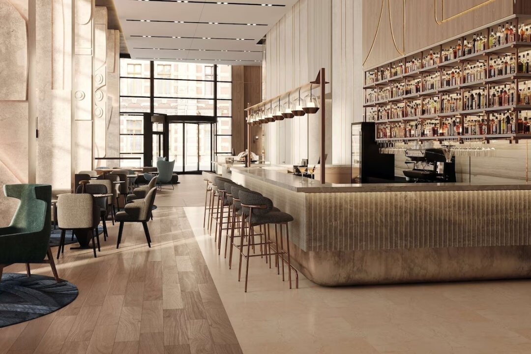 Стало известно, как будет выглядеть гриль-ресторан Stoke и лобби-бар, которые расположатся в отеле Radisson. Он получил разрешение на ввод в эксплуатацию еще в ноябре 2024 года, но пока официальной информации о дате открытия нет.