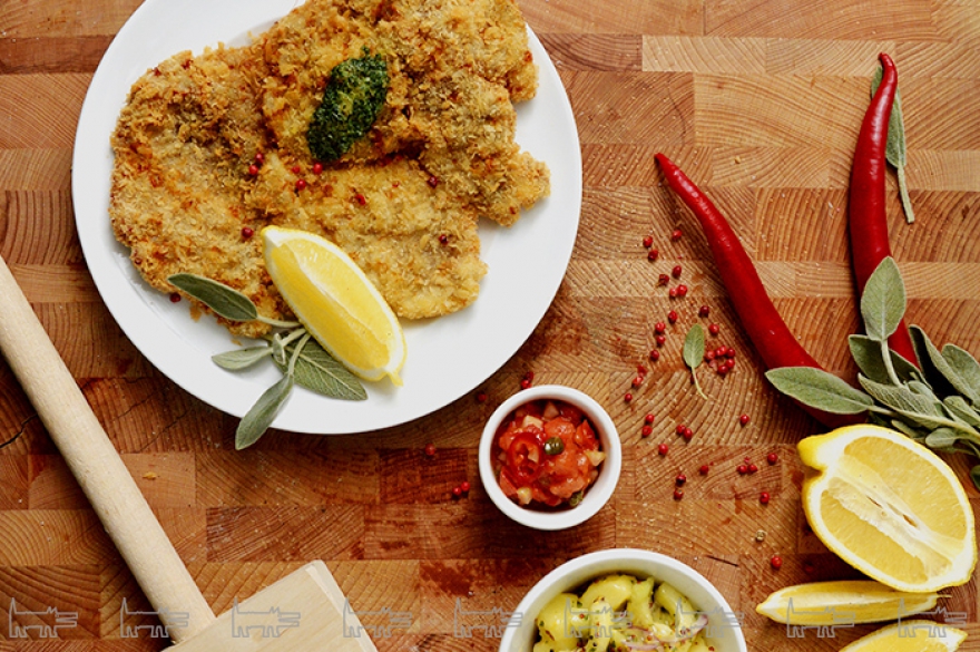 Концепция места, сосредоточенная на чем-то одном — продукте или блюде, — мода двухлетней давности, когда в Москве открылось кафе Crabs Are Coming с крабом во всех возможных инкарнациях, но Петербургу этому жанру до сих пор, кроме бургерных и пиццерий, предложить было нечего. А вот новое кафе Schnitzel на улице Некрасова, 28, может считаться образцом общепита с монокухней. Здесь на горячее можно взять только венский шницель на выбор из трех видов мяса — индейки, свинины и говядины. К каждому — своя панировка со специями, взбитое масло с травами, два салата — картофельно-огуречный и зеленый, соусы и намазки: острая томатная сальса, оливковый тапенад, йогуртовый мусс, оливковоили лимонно-сливочный соус.