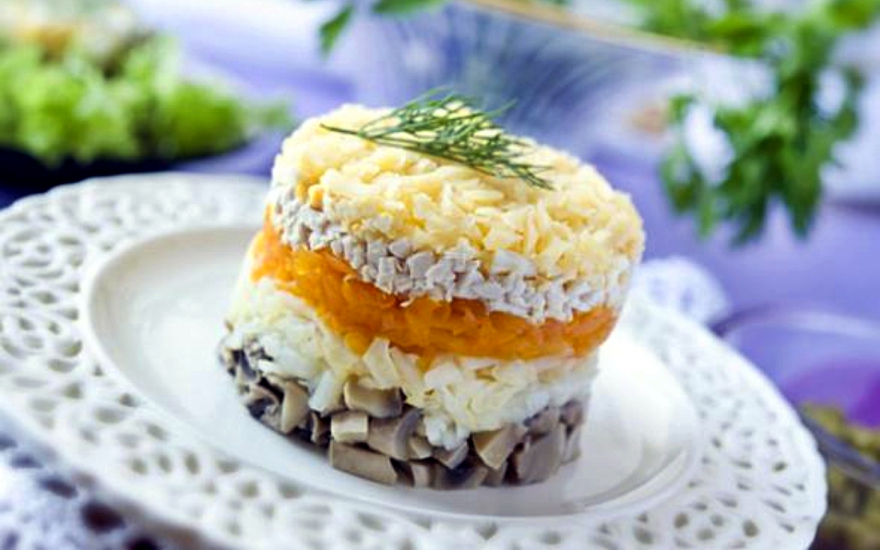Город был Петроградом почти в начале XX века, но салат его имени замечен только в середине 2010-х: господствующая версия, что этот гастропрожект изобрели кулинары сети «Карусель»: по сути, это та же «Мимоза», только слоями между картошкой, морковью и майонезом идет не красная рыба, а курица с шампиньонами.