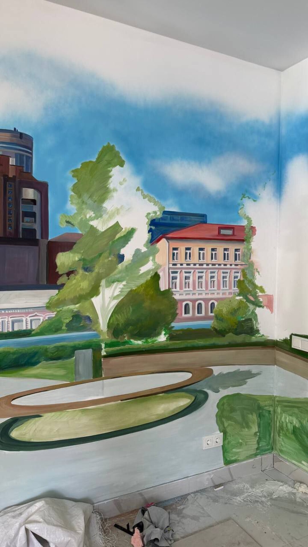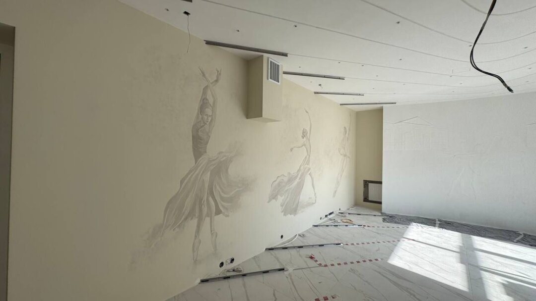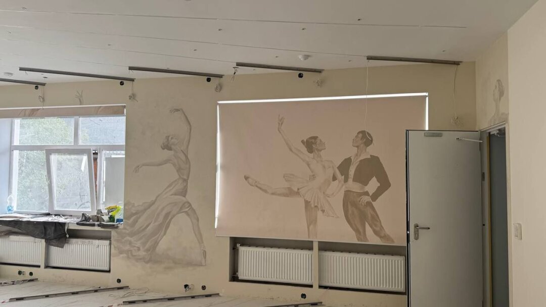 Сейчас в помещениях хореографического училища идут отделочные работы. Как рассказал советник губернатора по вопросам строительства Павел Черепанов, художники расписывают стены: среди изображений известные городские здания и балерины.