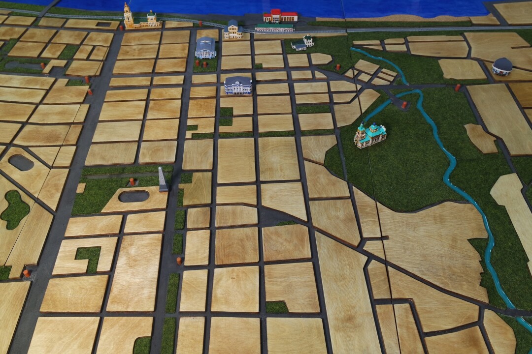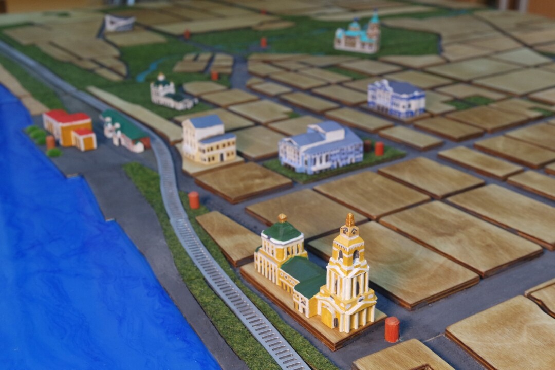 В Перми создали маленькие тактильные копии архитектурных памятников. Они расположены на карте, которая отображает исторический центр города.