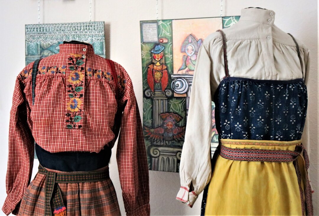 На выставке также представлены и мужские национальные пояса — кушаки и типичный женский кокошник лупьинских коми-пермяков. Дополняют экспозицию этнофутуристические работы художницы Светланы Паниной, вдохновленные коми-пермяцкой и славянской мифологией, а также книги о коренном народе Пармы и его культуре.