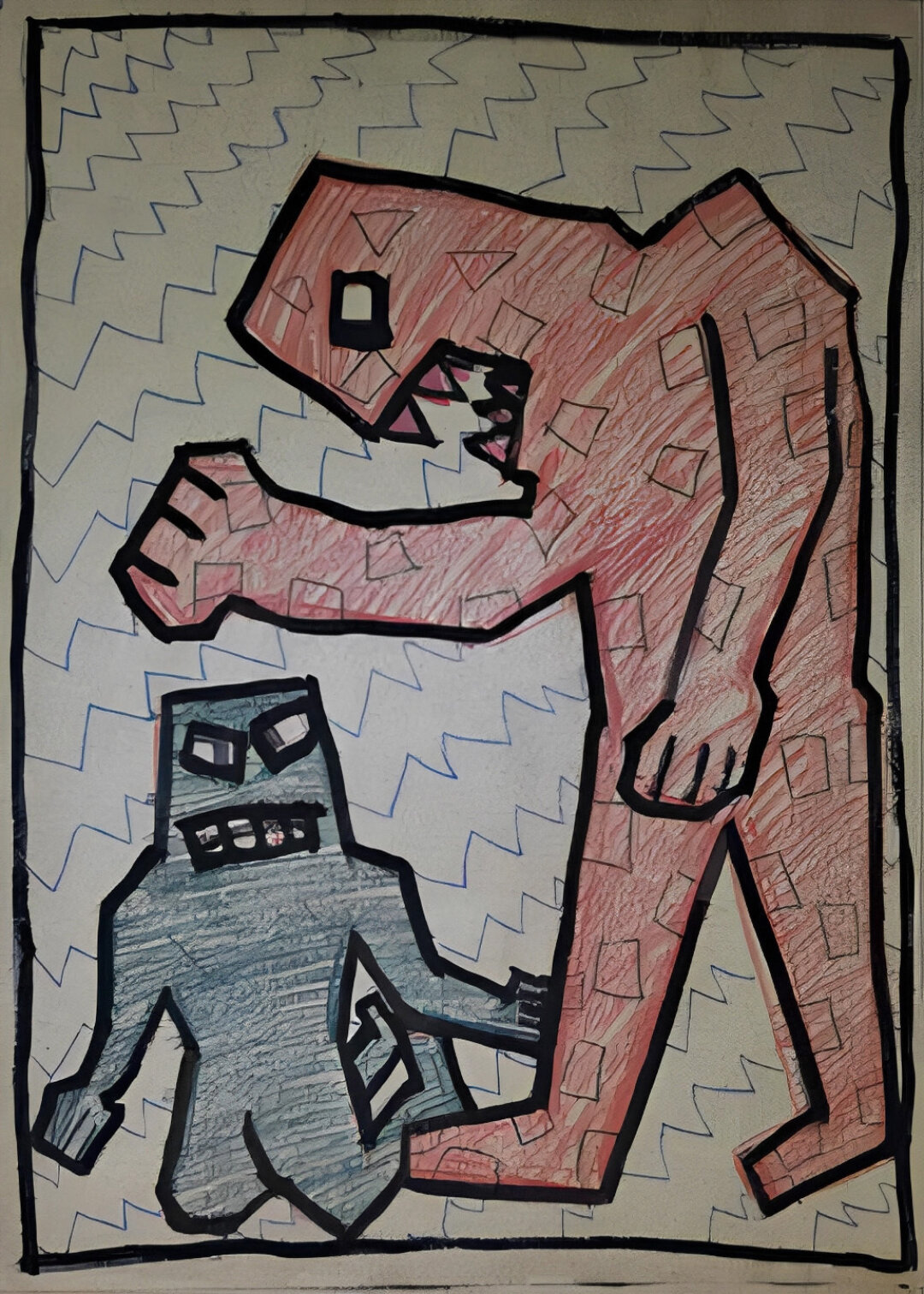 Александр Джикия. «Трехлицый великан». Калька, тушь, фломастер. 1996