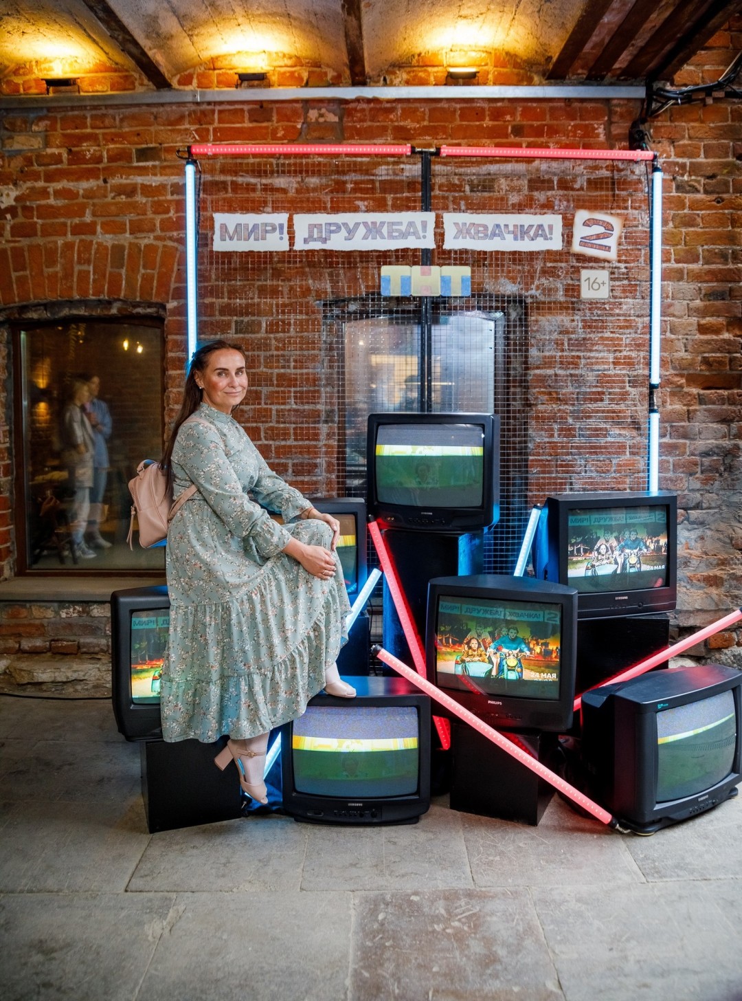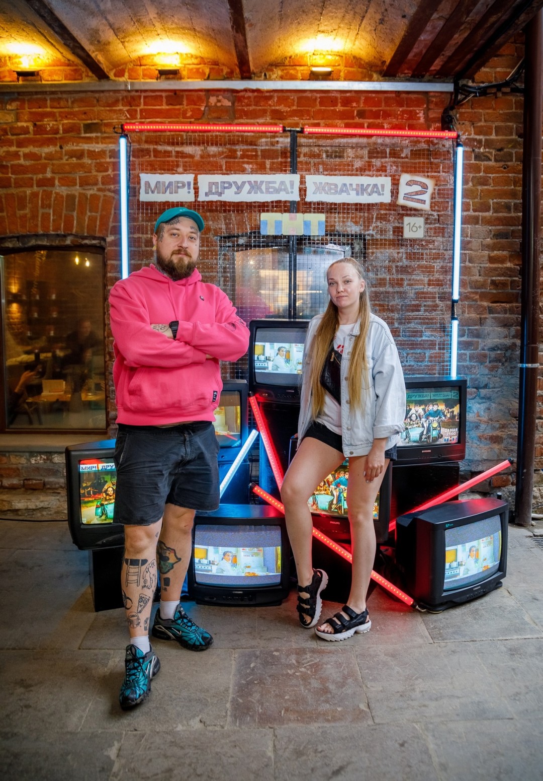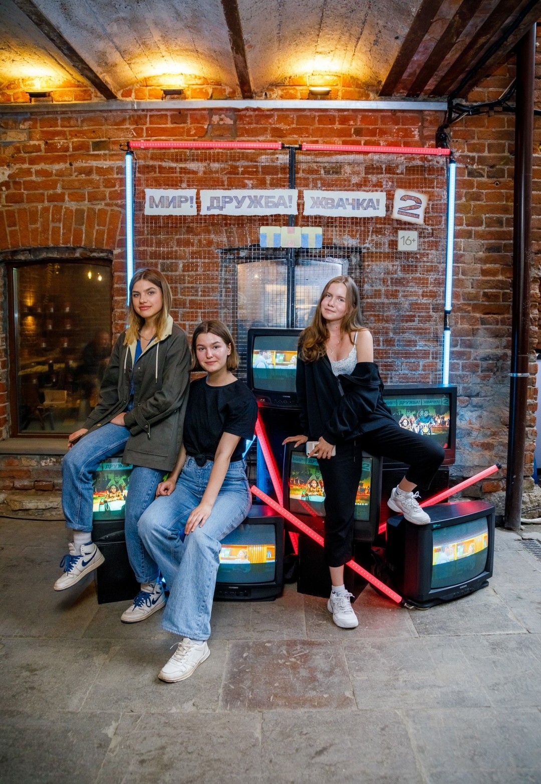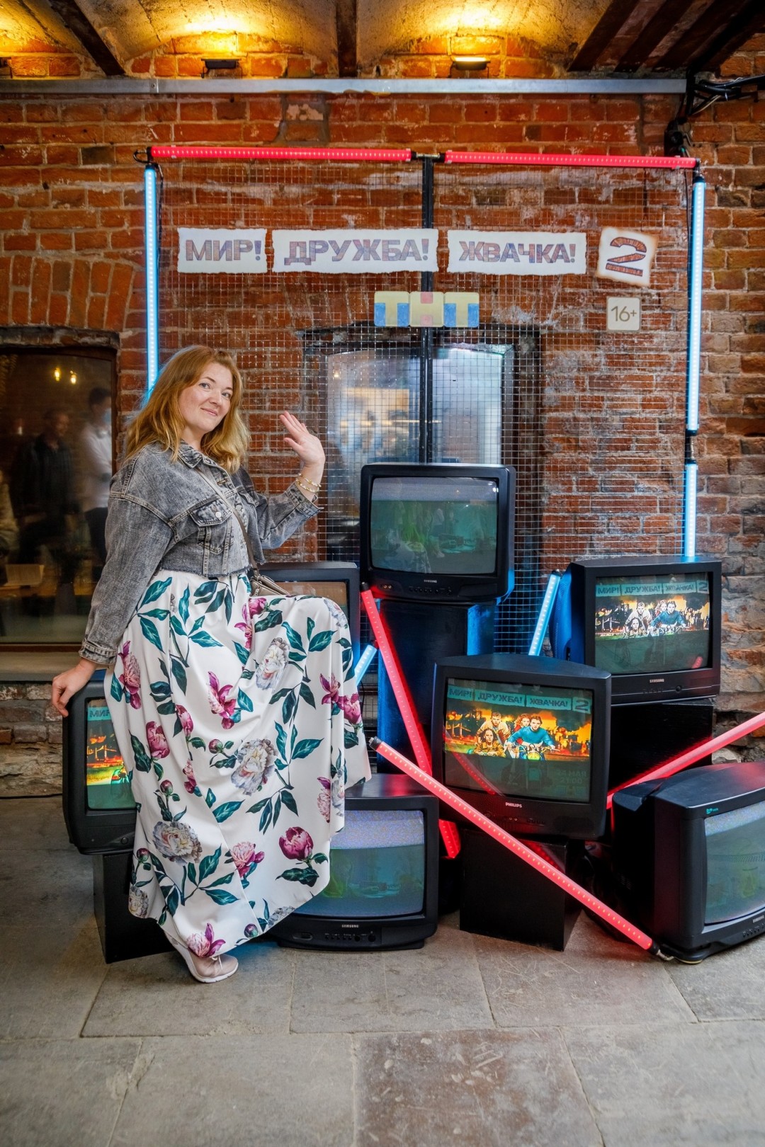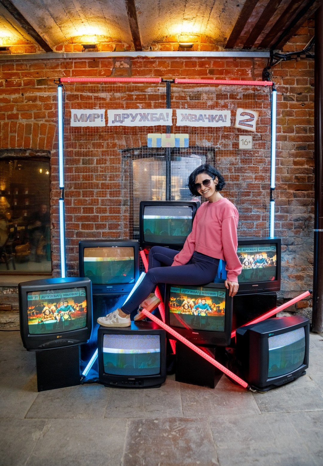 В Перми в Старокирпичном переулке 22 мая появился арт-объект, собранный из старых моделей телевизоров, на которых транслировался первый сезон сериала «Мир! Дружба! Жвачка!» – истории о правдивых российских девяностых. По сюжету, в сериале 1993 год – время, когда вся страна переживала переходный период и каждый встраивался в новую жизнь, как мог – законно и не совсем.