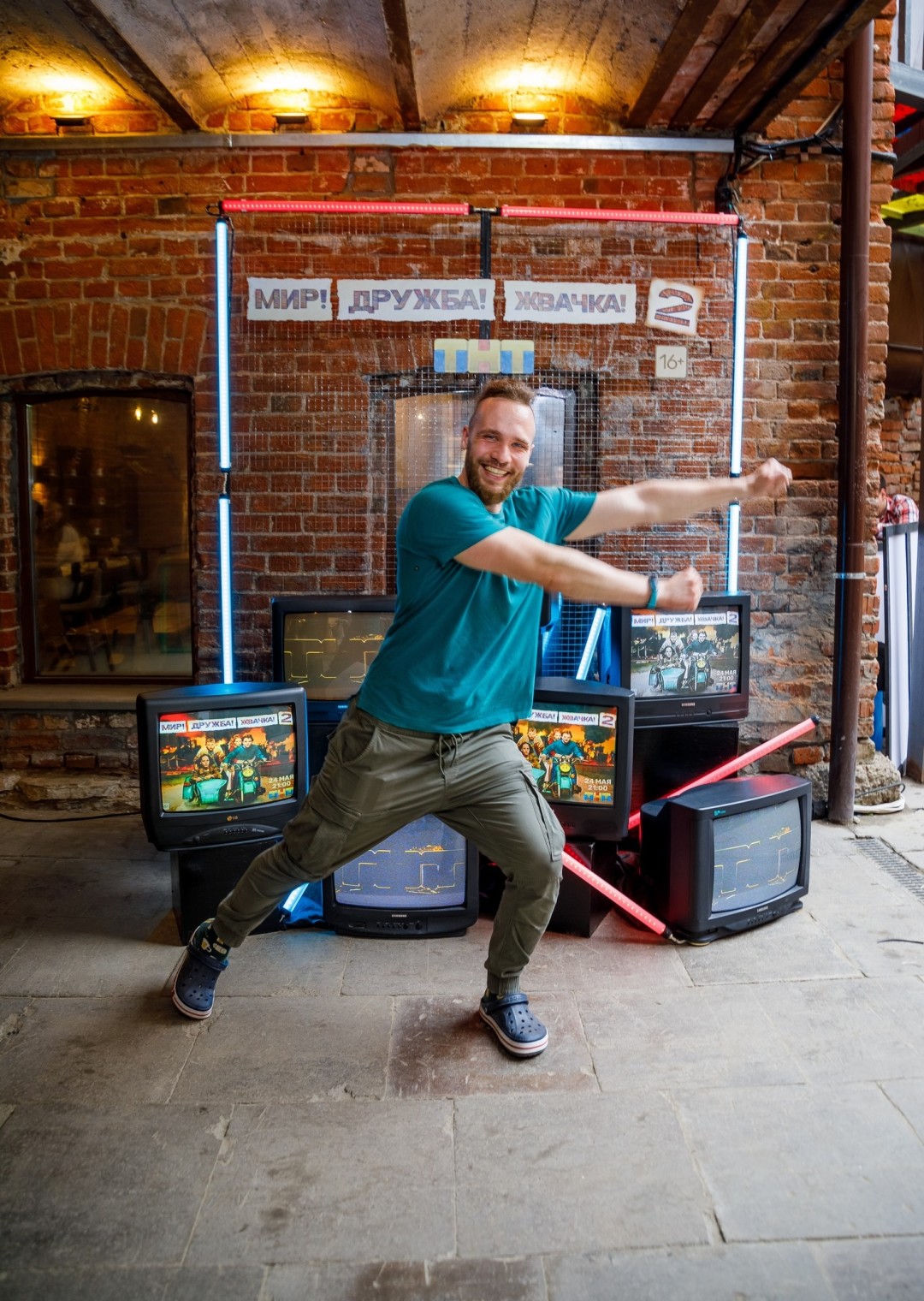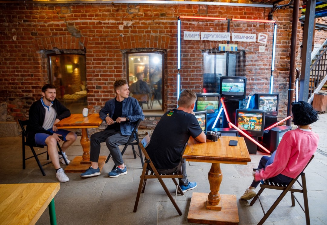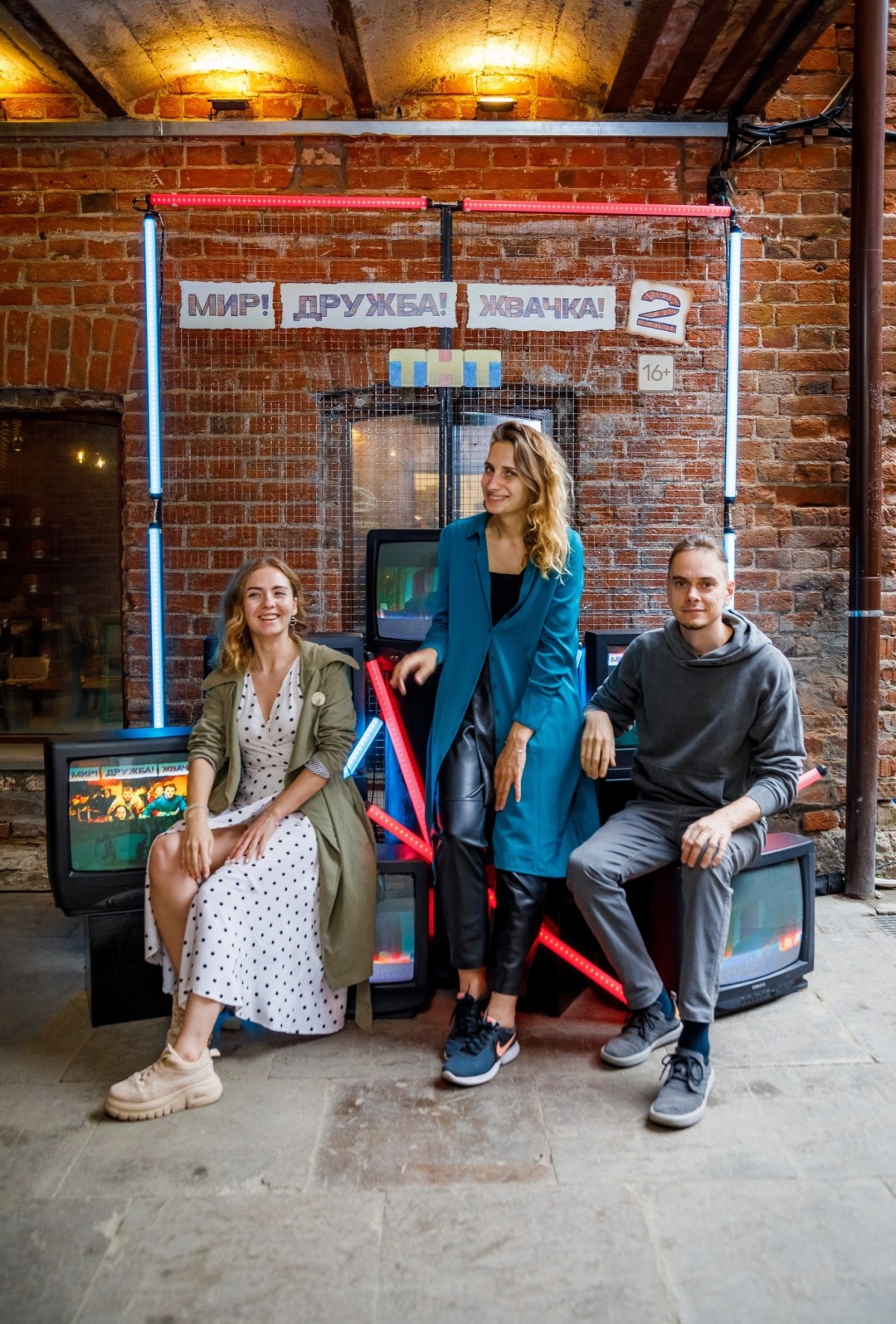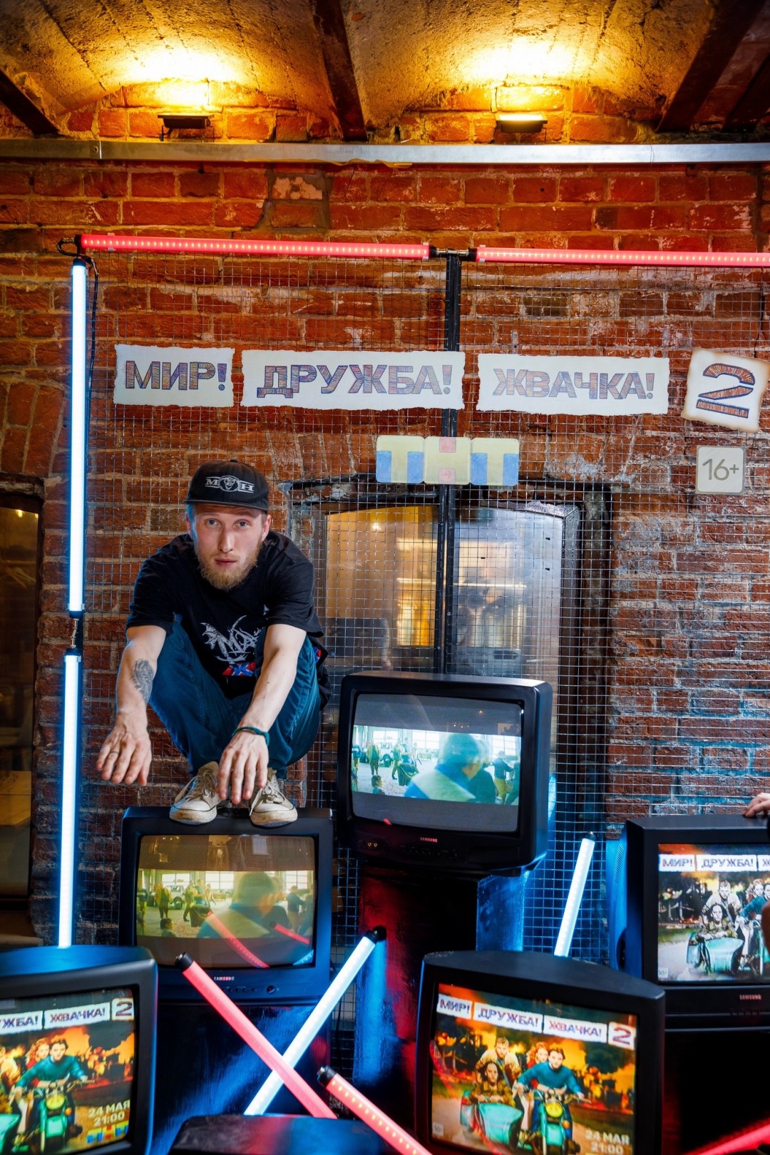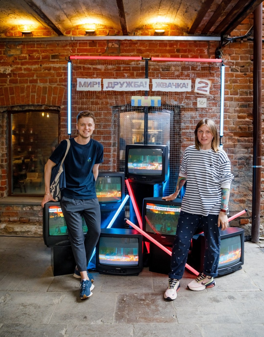 В Перми в Старокирпичном переулке 22 мая появился арт-объект, собранный из старых моделей телевизоров, на которых транслировался первый сезон сериала «Мир! Дружба! Жвачка!» – истории о правдивых российских девяностых. По сюжету, в сериале 1993 год – время, когда вся страна переживала переходный период и каждый встраивался в новую жизнь, как мог – законно и не совсем.