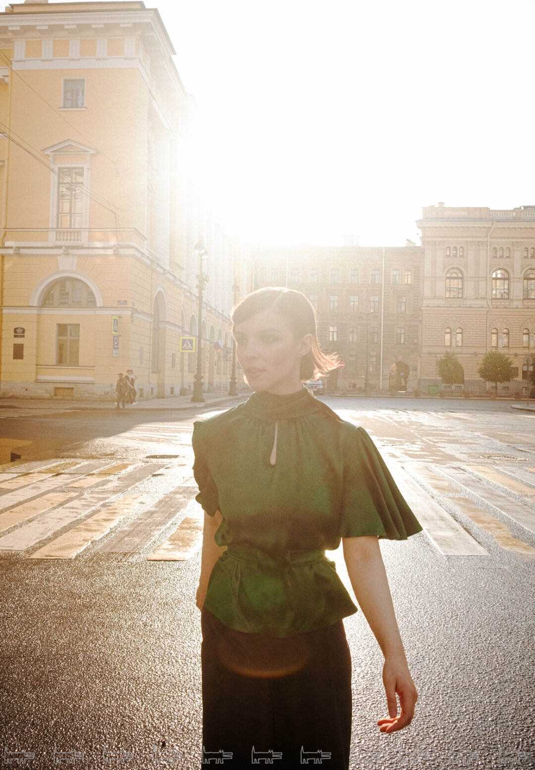 Площадь Островского. Коман­да Собака.ru в сборе. Задача: поймать в один кадр Цыгановых, а может, и поговорить с обоими. Договорились на 16:00, но что-то пошло не по плану: Евгений уехал на перерыв, Полину грими­руют. Сидим на скамеечке, дума­ем о шуме времени. 17:00. В ход пошел кинокорм и третья чаш­ка кофе. В час небывало жарко­го дня на мерцающем горизонте соткалась художник по костюмам Надежда Васильева. Надя толь­ко что одела для масштабной сце­ны массовку, человек сто — не меньше. «О! А вы тут что сиди­те? Ну, сидите!» — и растворилась. 18:00. Продюсеры сообща­ют, что Полина освободилась, но Евгений отправился разгримировываться. 19:00. Только теперь мы наконец понимаем, что кино — профессия для очень, очень тер­пеливых. 20:00. Евгения, по слу­хам, отпустили со съемок. А вот у Полины поправка грима. Кофе не лезет. Бутерброды с колбасой за­кончились. Осталось печенье. Меланхолично жуем. 20:30. Евгений появляется у гримвагена. Пройдя за пять часов на съемочной пло­щадке когнитивно-телесную прак­тику «Шум времени», Ксения Го­щицкая бросается наперерез.