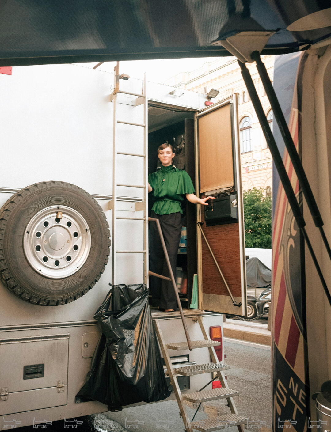 В Петербурге в разгаре съемки амбициозного небайопика под рабочим названием «Шум времени» о Дмитрии Шостаковиче — режиссер и генеральный продюсер картины Алексей Учитель готовит премьеру к 120-летию со дня рождения композитора. Актеру Евгению Цыганову досталась роль Сергея Прокофьева (и два часа пластического грима перед каждой сменой), а его дочери Полине — роль Красивой Девушки. И это полный метр, где на площадке впервые встретились два поколения Цыгановых. Редкая удача, подумали мы — и решили первыми, до Учителя, поймать отца и дочь в одном кадре. Шалость удалась: ловля заняла примерно пять часов и развернулась в полноценный спектакль-антракт — придуманный нами жанр иммерсивного проживания момента.