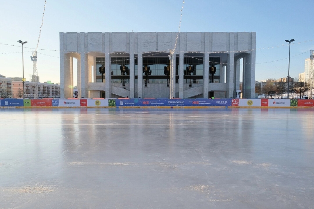 В министерстве спорта анонсировали открытие катка на эспланаде у Театра-Театра. Он начнет работать вечером 30 декабря. Сейчас рабочие заканчивают его монтаж.