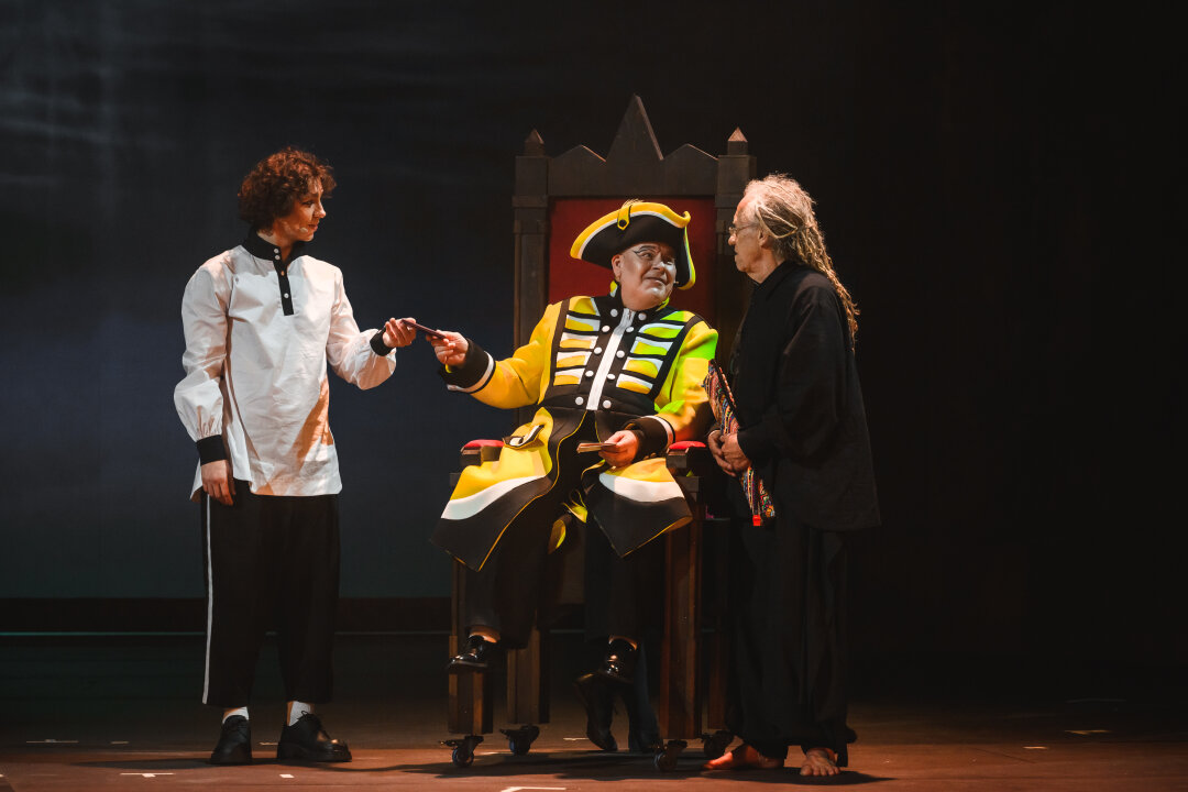 «Когда на сцене открывается наша "железная шкатулка", появляется целый сказочный мир — мир архетипов. Сам поэт подсказал нам код художественной интерпретации "Капитанской дочки", ведь в его произведении много фантазийного. Мы допустили определенную степень временной эклектики и создали пространство большого русского сна, в котором уместен и мотоцикл с коляской, и фэшн-костюмы, и музыкальный сторителлер Клаус Бургер, и Достоевский, перевоплощающийся в Савельича. На территории спектакля мы размышляем о персонажах повести как об архетипах. История Петра Гринева — архетипический путь героя, который, сталкиваясь с трудностями, взрослеет. И здесь крайне важна знакомая всем фраза "береги честь смолоду": у Гринева есть камертон чести, который он сохраняет даже в суперсложных и неоднозначных обстоятельствах, оставаясь честным в своем намерении до конца», — поделился режиссер спектакля Александр Пронькин.