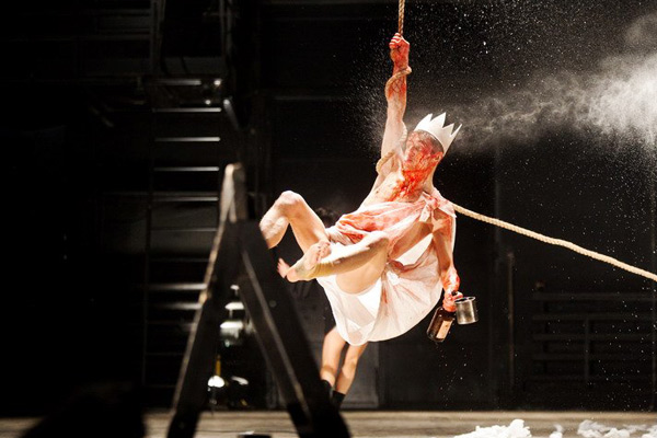 Несомненный хит прошлого театрального сезона, горячечный карнавальный трип, поставленный солидным 52-летним человеком, главным режиссером Театра имени Ленсовета. Юрий Бутусов превратил хрестоматийную шекспировскую трагедию в коллаж из эффектных мизансцен-кадров, разыгранных молодыми и резвыми актерами и озвученных крайне пестрым саундтреком: от лирической темы из кар-ваевского «Любовного настроения» до грохочущей дискотеки.