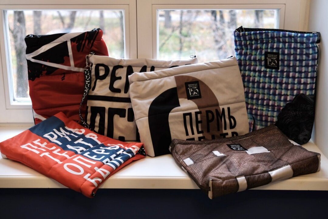 В Пермском театре оперы и балета решили выпустить необычные сумки. Их шьют из флагов, которые устанавливают перед зданием театра ко многим ярким событиям, например, к Дягилевскому фестивалю.