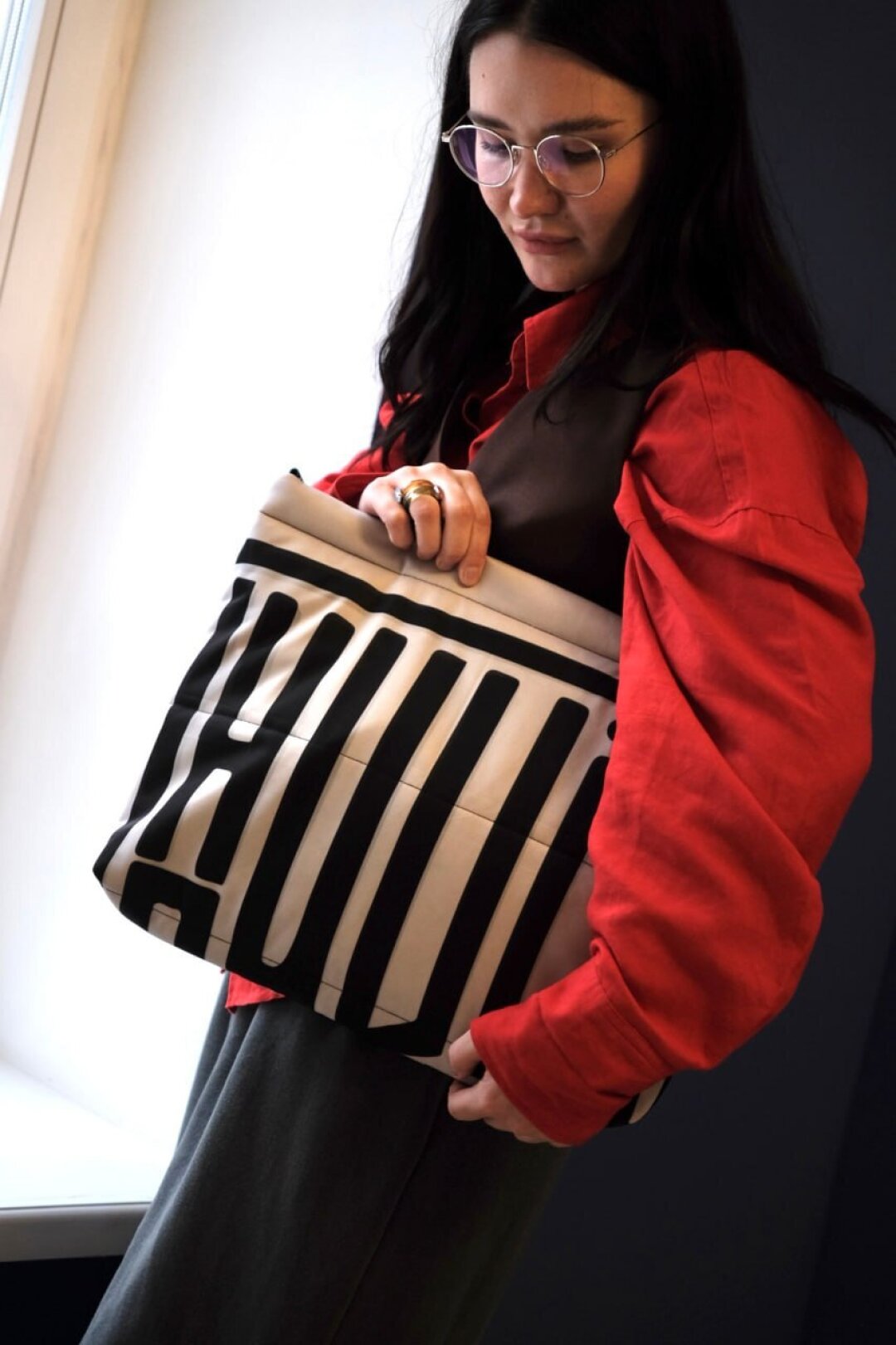 Основа сумок выполнена из износостойкого материала с надежной подкладкой, а внутри есть карман на молнии. Каждое изделие дополнено широким ремнем с фирменным паттерном, созданным на основе знака 155-летия театра. В театре рассказали, что фрагмент флага, использованный для сумки, уникален.