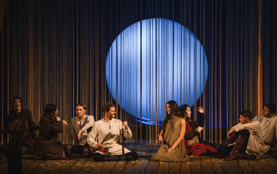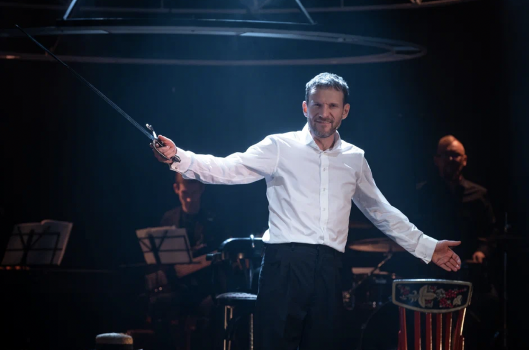 На сцене Театра-Театра спектакль «Сердце Пармы по мотивам романа Алексея Иванова. Этот спектакль представляет собой синтетическое искусство, где вокал, пластика и драматическое мастерство актеров сочетаются с элементами кукольного театра и сценографией. Актеры не только исполняют песни, но и играют на специальных музыкальных инструментах, создавая уникальный звуковой и визуальный мир.