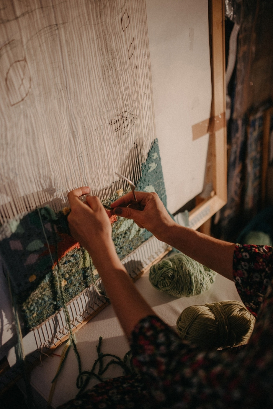 В ходе мастер-класса Екатерина Борисова научит создавать и изображение, и саму ткань одновременно, при этом украшая ее сухоцветами.