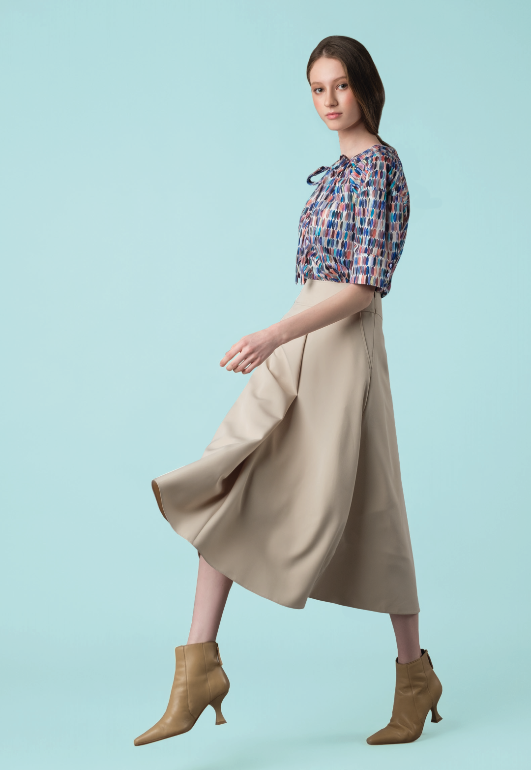Светлая расклешенная юбка – секретное оружие женщины. Во-первых, актуально. Во-вторых, эффектно. В-третьих, практично. Весной сочетайте с объемными свитерами и жакетами, а летом дополняйте цветными блузами и майками.