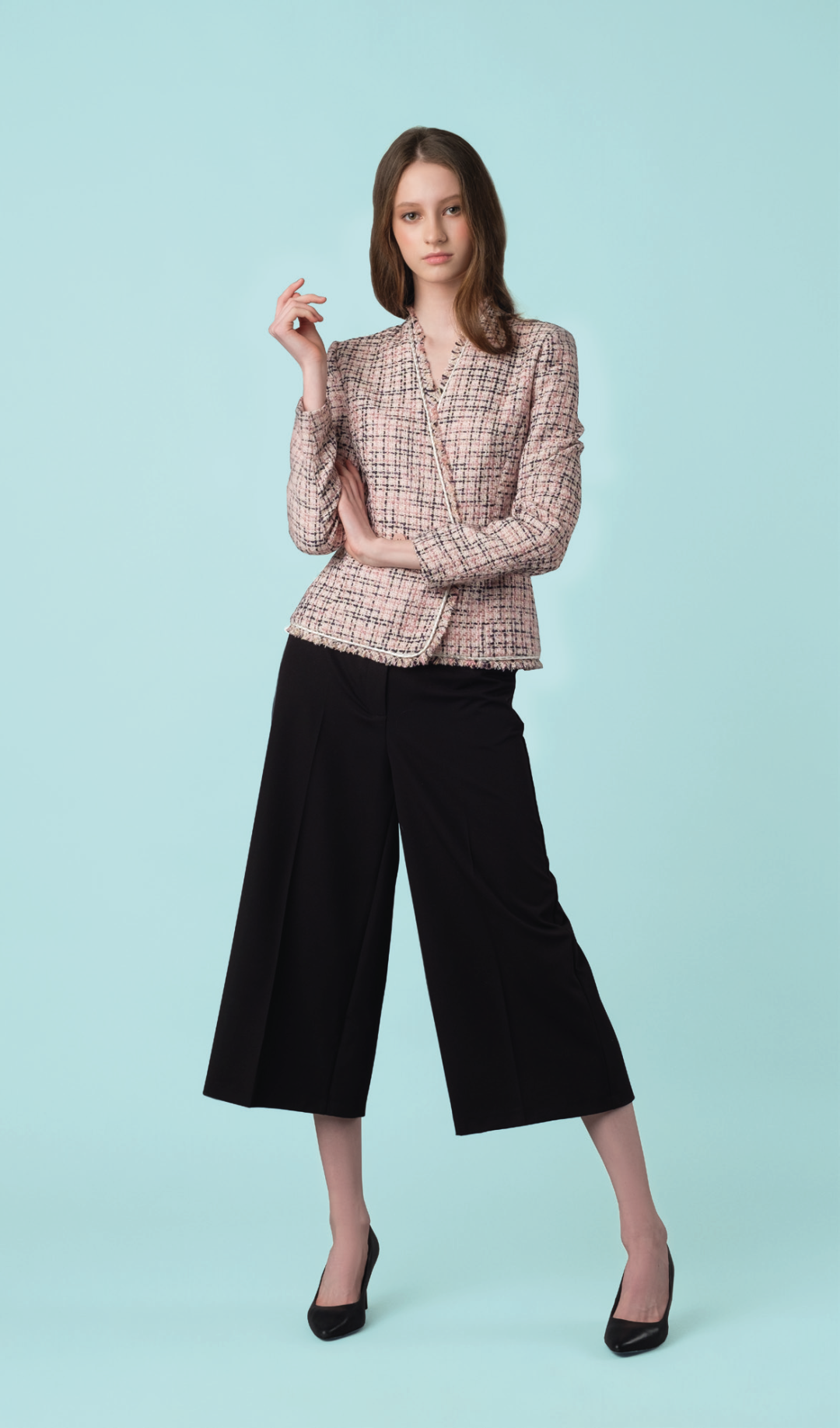 Жакет в стиле Chanel – вечная классика. Его легко интегрировать в гардероб, как дамы элегантного возраста, так и современной ит-герл. Буклированный жакет легко соединяется с юбками «годе» и «карандашами», с джинсами и кюлотами.