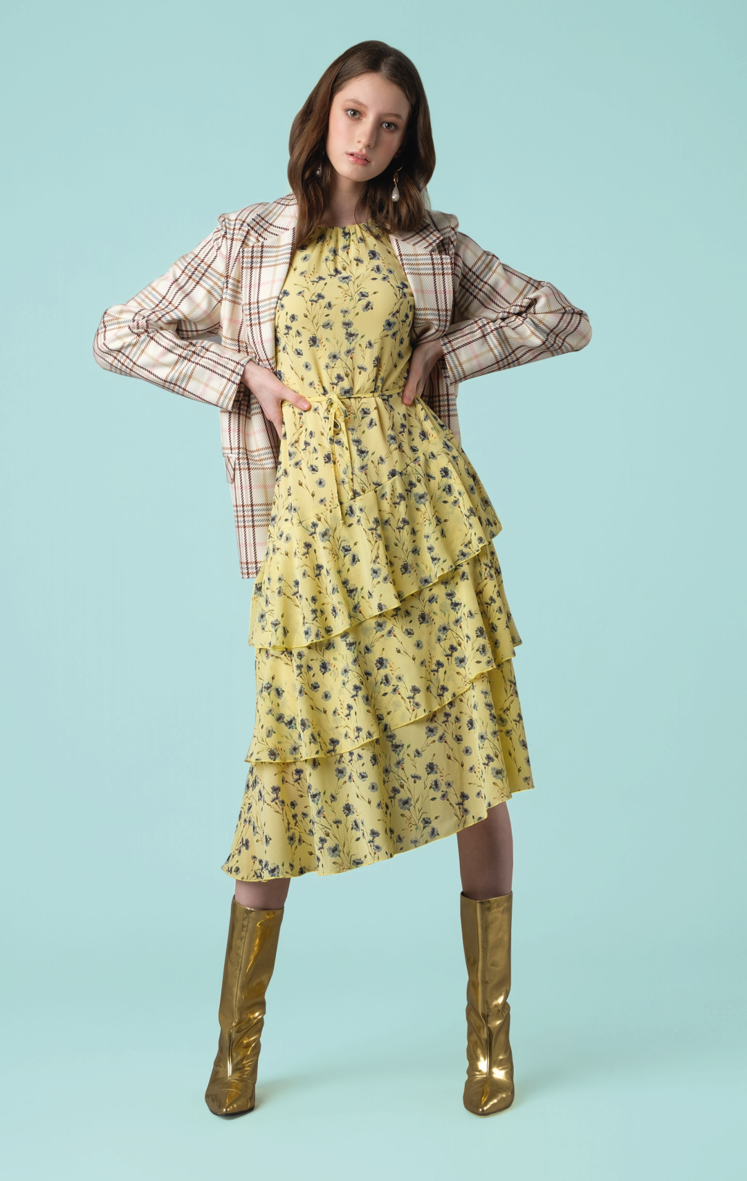 Хотите выглядеть легко и женственно – встречайте весну в платье в цветочный принт оптимистичных оттенков. Носите его с клетчатым жакетом свободного кроя.