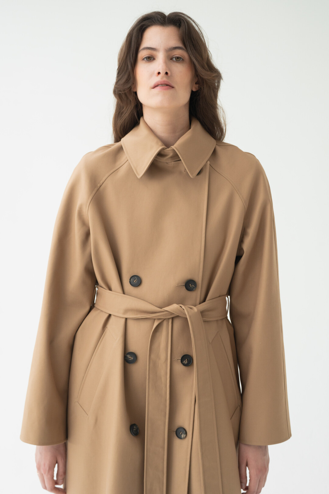 Тренчи из ткани Burberry с воротником-стойкой и заостренными лацканами — в новом дропе марки FLÜG