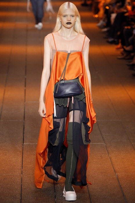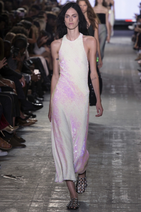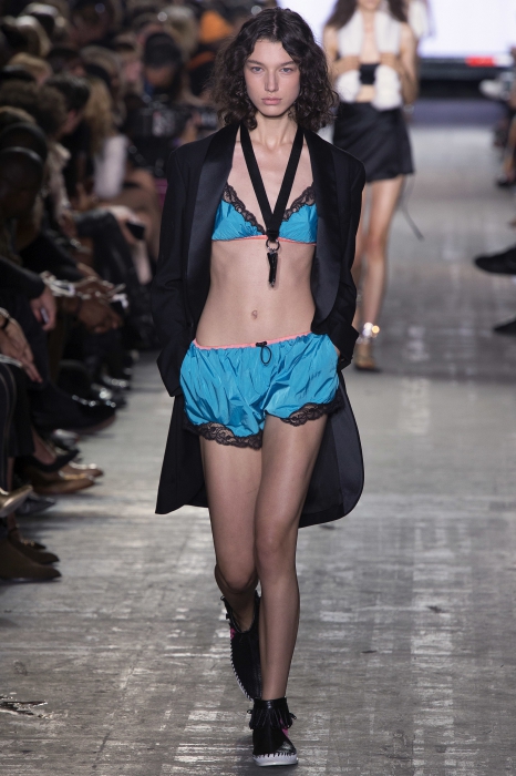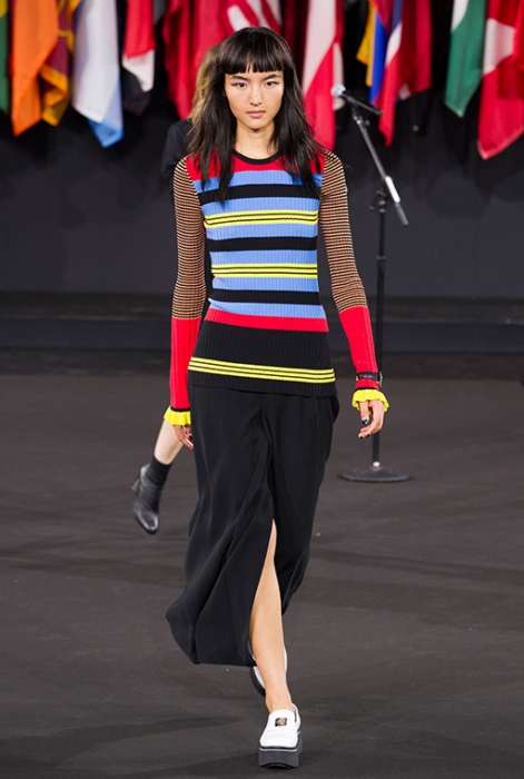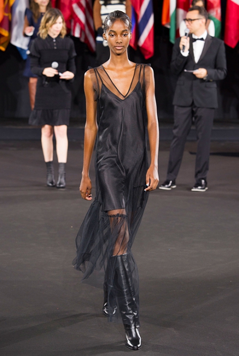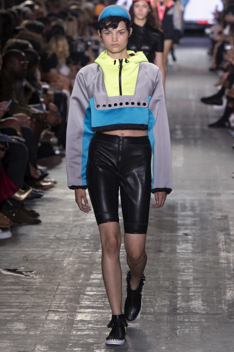 Новые дизайнеры DKNY Дао-И Чоу и Максвелл Осборн представили третью коллекцию. Напомним, год назад Донна Каран объявила о своем уходе из бренда, а генеральный директор Donna Karan International Кэролайн Браун начала программу ребрендинга, пригласив дуэт основателей марки Public School. Весенне-летнюю коллекция Чао и Осборн посвятили уличной культуре: здесь и худи с длинными рукавами, рабочие комбинезоны на кулисках, прозрачные спортивные ветровки, легинсы и заправленные в носки тренировочные штаны. А модельный состав шоу стал поводом для похвалы от критиков. Девушки на подиуме не отличались принятой ультрахудобой и больше напоминали ангелов Victoria’s Secret: Имаан Хаммам, Стелла Максвелл, Тейлор Хилл и Белла Хадид, которая открывала и закрывала показ.