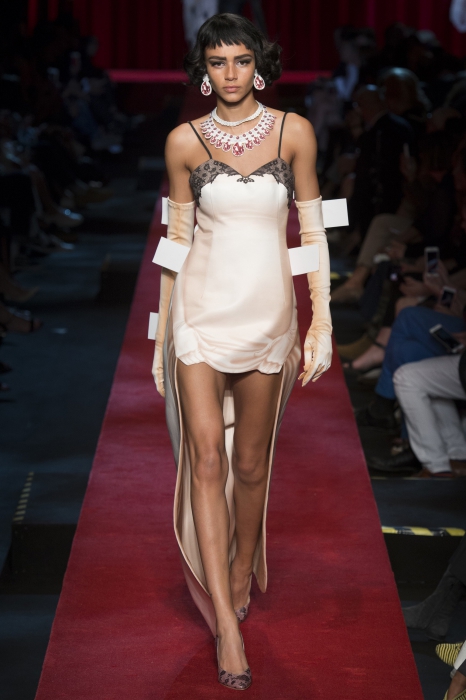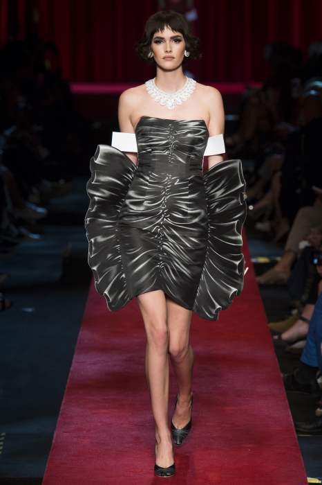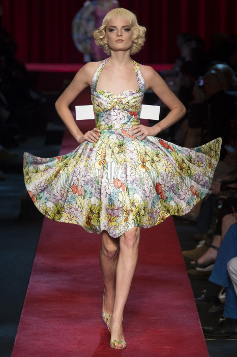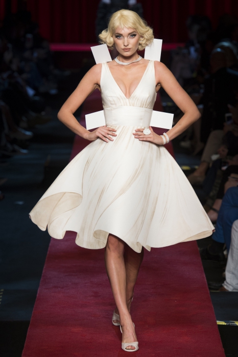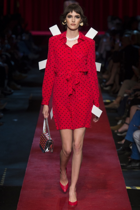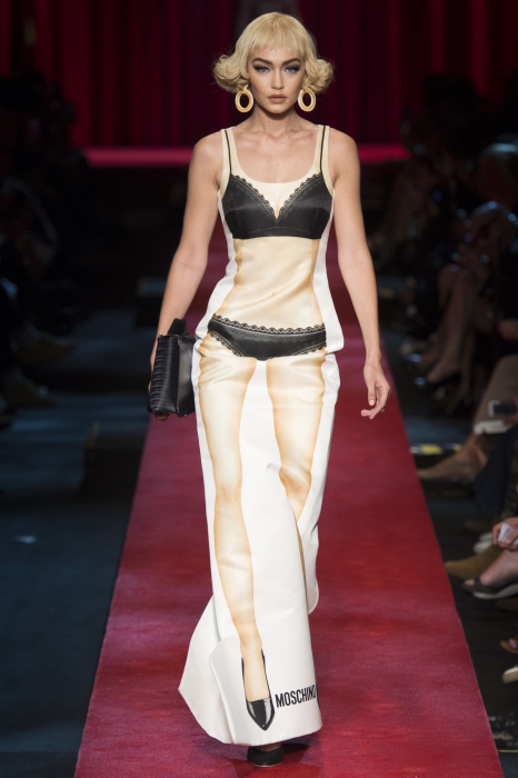 Остроумие Джереми Скотта стало все больше походить на безумие. Новую коллекцию дизайнер Moschino посвятил аналоговой эпохе и 3D-технологий, когда девочки играли не в игры на iPhone, и даже не в Барби, а в бумажные куклы. Модели на подиуме вчерашнего показа и имитировали эти куклы. Узнаваемые образы из 1950-х на подиуме были дополнен бумажным креплением. По фотографиям может показаться, что Скотт приготовил бумажную коллекцию — но на самом деле это мастерски отпечатанные принты, повторяющую фактуру бумаги, на тренчкотах, платьях и купальниках.