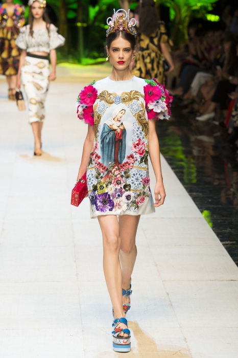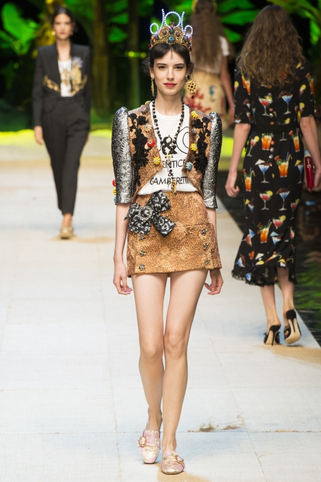 Своей новой коллекции Доменико Дольче и Стефано Габбана дали название Tropico Italiano, по которому сразу стало понятно, что на шоу марки в рамках Milan Fashion Week будет, как минимум, весело. Итальянские тропики у Dolce & Gabbana — это территория от Неаполя до Сицилии.