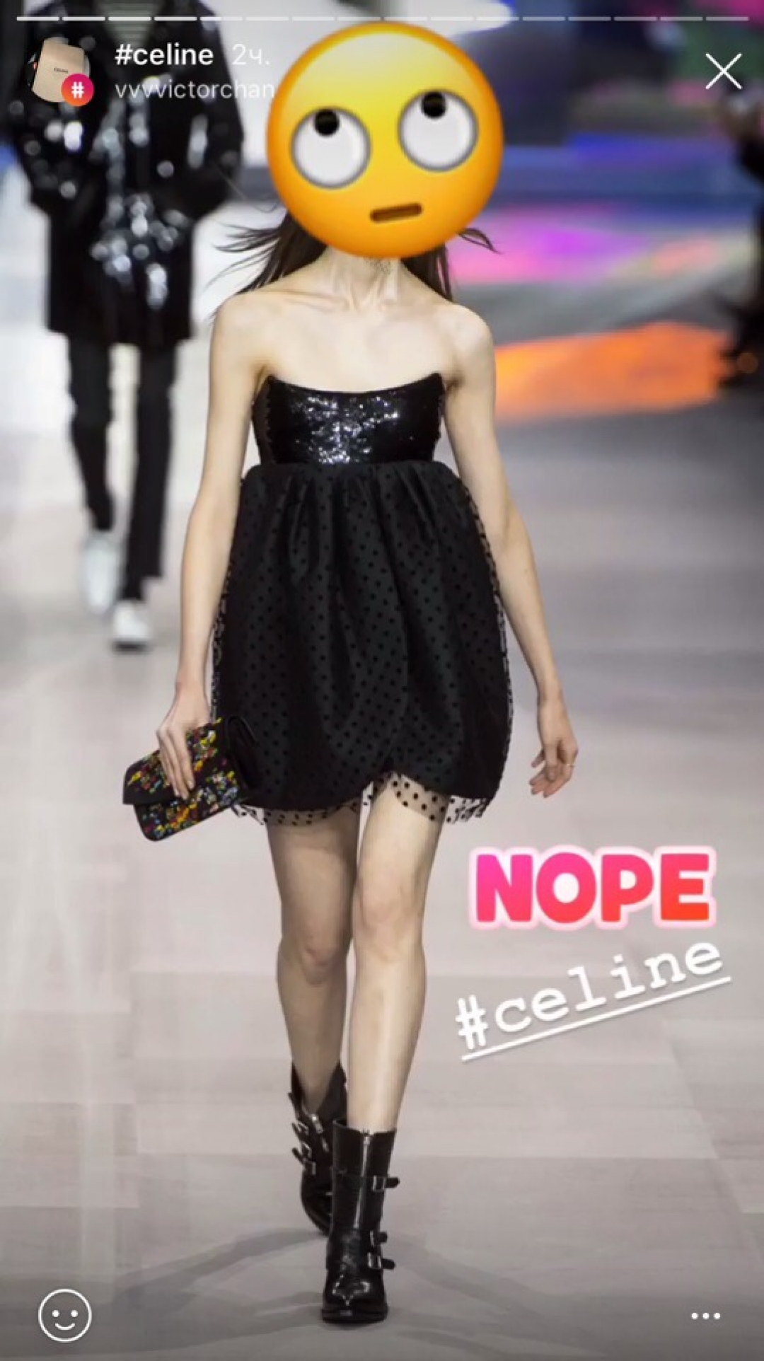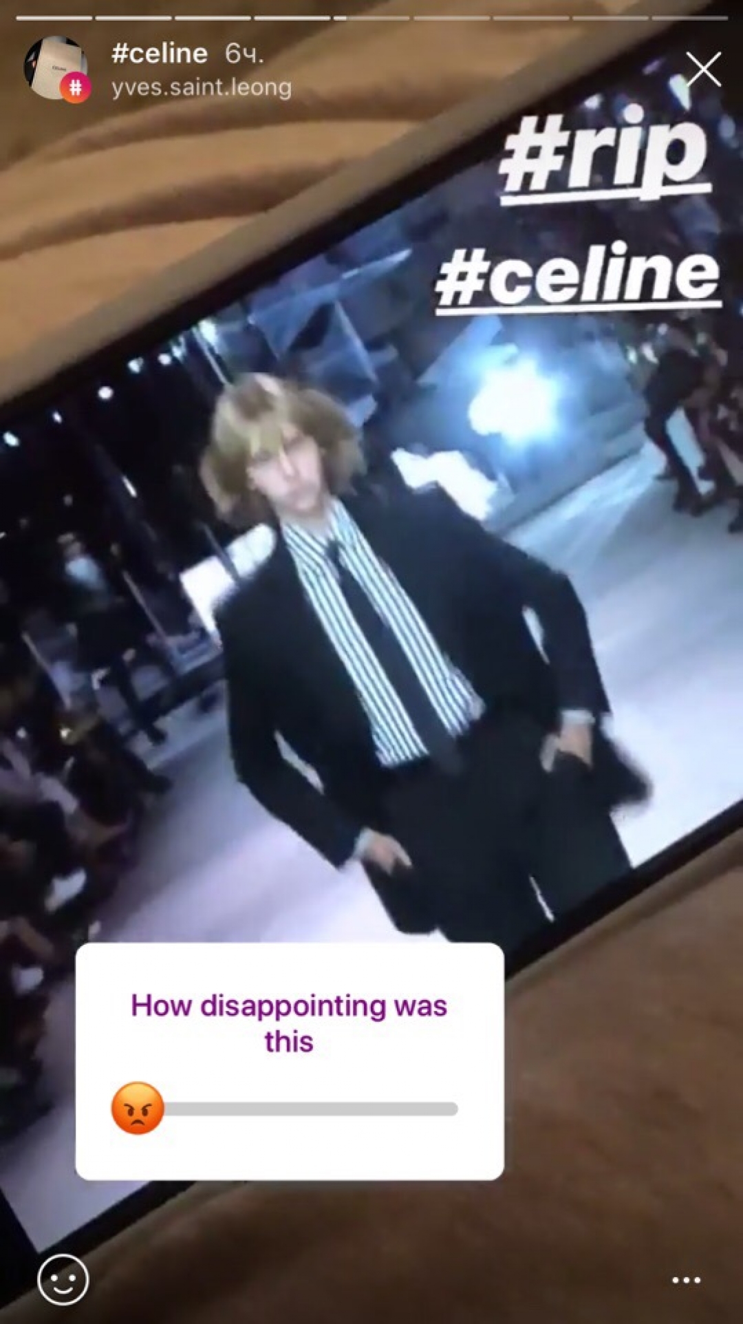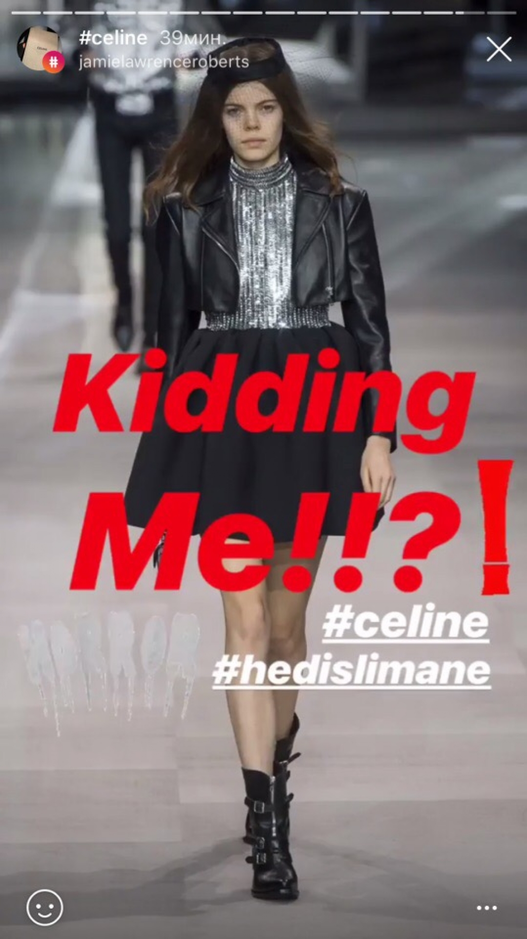 Готовьтесь: всю следующую неделю модная общественность будет обсуждать дебют Эди Слимана в Celine, который разочаровал поклонников power-dressing стиля Фиби Файло. Вместо интеллигентных костюмов, минималистичных сумок и закрытых платьев, в которых работающая женщина могла провести весь день, они получили глубокие декольте, ультрасексуальные мини, унисекс-костюмы и новую ролевую героиню — теперь она предпочитает тусоваться до утра, облокотившись на стойку в парижском баре. Мы собрали реакцию социальных сетей на новую коллекцию Celine: мнение редакции может не совпадать с мнением героев.