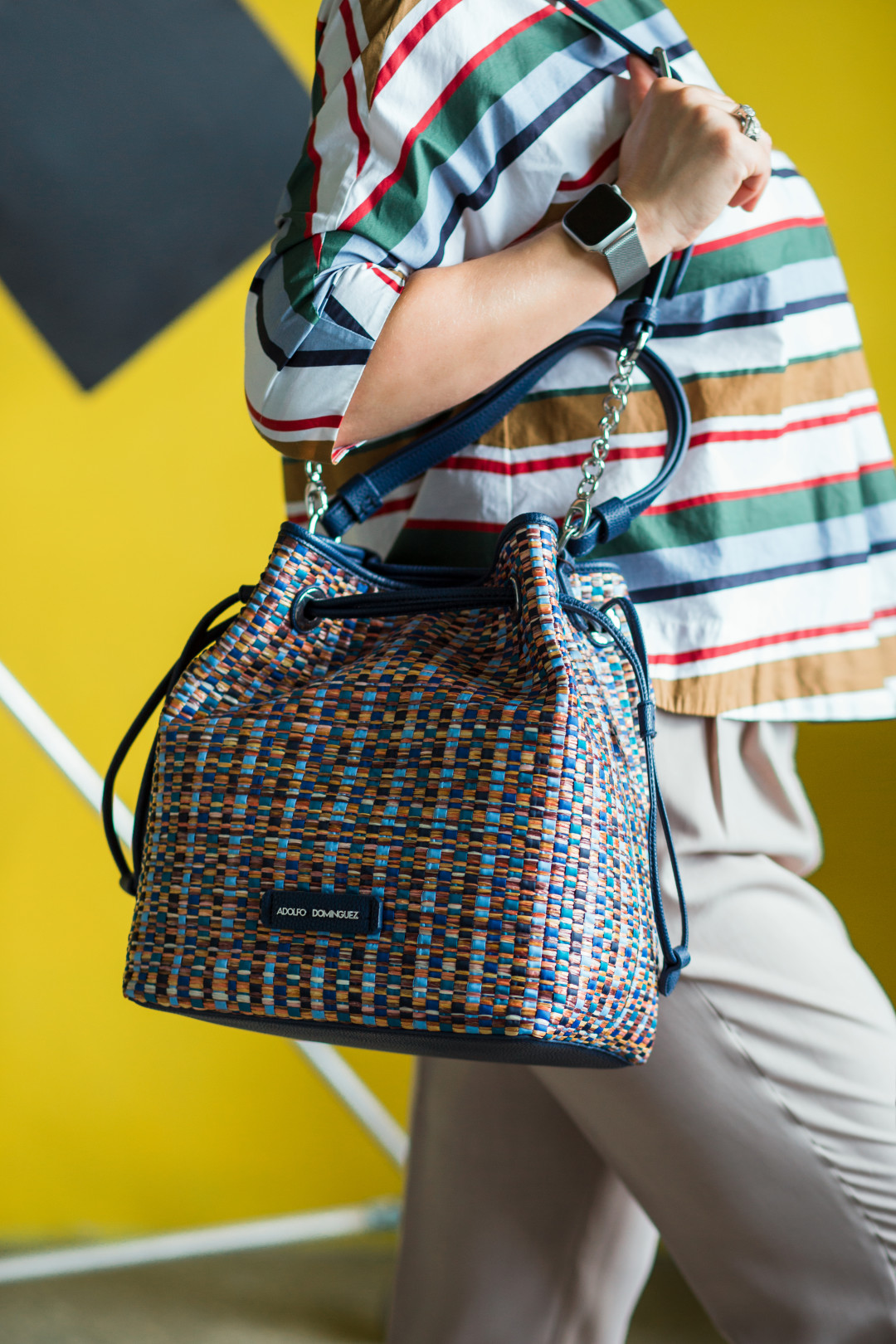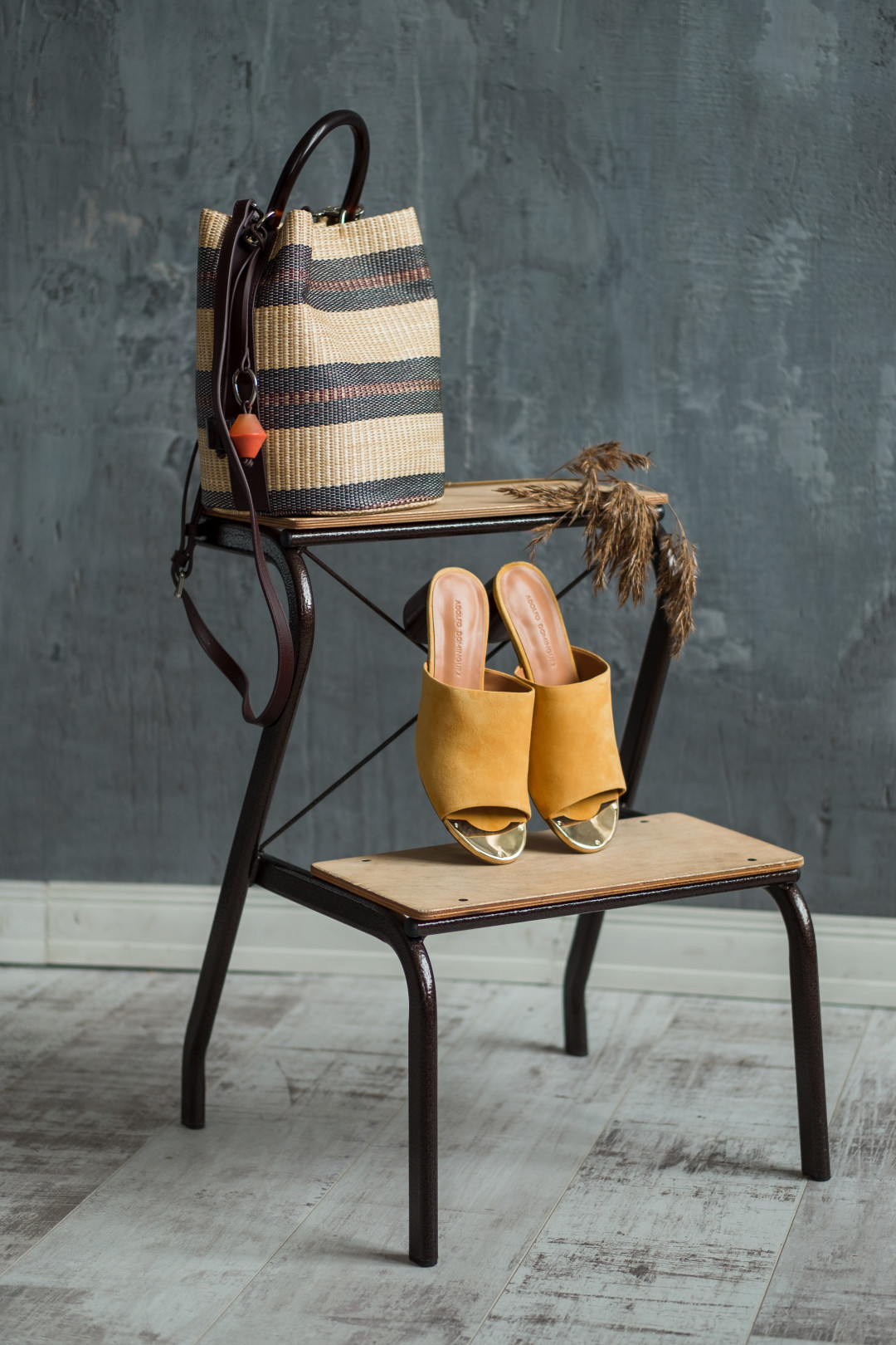 На встречу с подругами или в поход по магазинам лучше всего облачиться в удобную одежду. Для этого подойдет свободная рубашка в сочную полоску в сочетании с укороченными брюками актуального песочного цвета. Плетеная модная сумка и удобные мюли, станут правильными акцентами летнего образа.