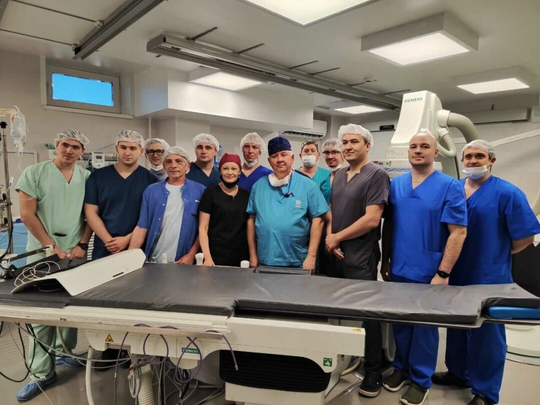 «Установили, что у пациента произошел разрыв сосудов. После консультаций с нейрохирургами было принято решение об экстренном оперативном вмешательстве. Кирилл Дульцев и я провели рентгеноэндоваскулярную эмболизацию артерий, приводящих к АВМ. Суть ее в том, что ангиохирург вводит в артерии тончайший катетер, а затем эмболизирует патологические сосуды, то есть выключает их из кровотока, таким образом восстанавливая нормальную циркуляцию крови», — поделился заведующий отделением рентгенохирургических методов диагностики и лечения (РХМДиЛ) ГКБ №4 Олег Каракулов.