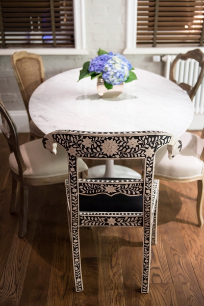 Мой муж Антон Збрицкий управляет сетью ресторанов Bullhouse и сам прекрасно готовит, поэтому ему важно было иметь дома столовую зону, чтобы принимать гостей. Стол, который мы выбрали, создал американский архитектор финского происхождения Эро Сааринен. Этот предмет мебели был придуман в 1956 году и до сих пор является одним из самых модных и продаваемых в мире. Он присутствует во всемирно известной коллекции мебели Tulip Collection, вошедшей в экспозицию нью-йоркского Музея современного искусства (MоMA). Прошло уже более пятидесяти пяти лет, а он по-прежнему кажется космическим и смотрится футуристично.